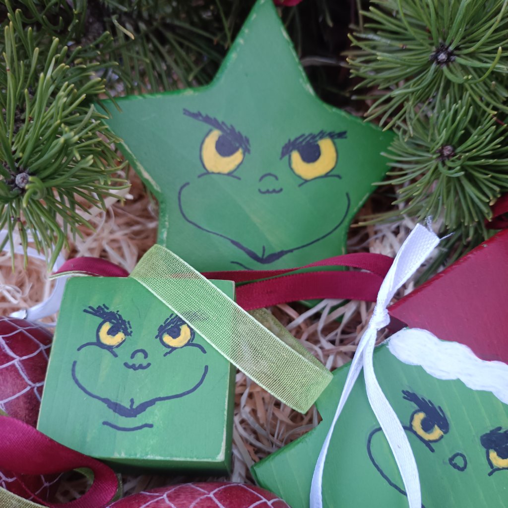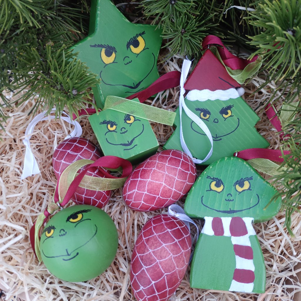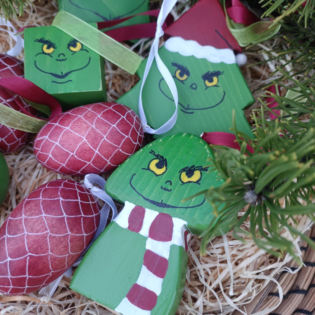 "GRINCH VIBE"- sada dřevěných ozdob na stromeček