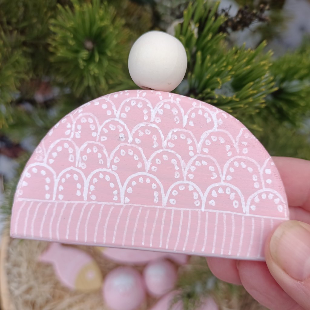 "PLETENÁ RŮŽOVÁ"- sada dřevěných ozdob na stromeček