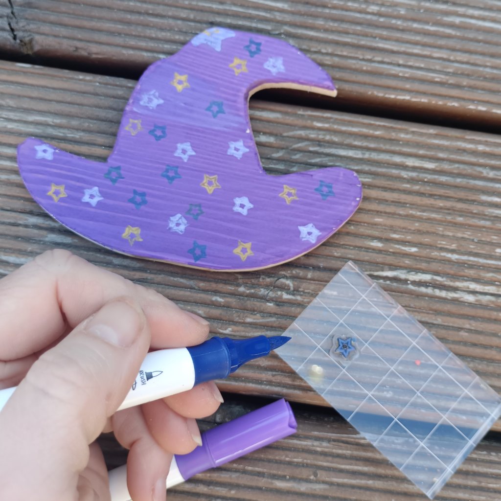 Druhá varianta je malinký klobouk ze slabšího materiálu , který může být vhodným doplňkem pro věnce, k volnému zavěšení do prostoru nebo do společné dekorace s jinými tvary jako dýně kočka nebo ježek.