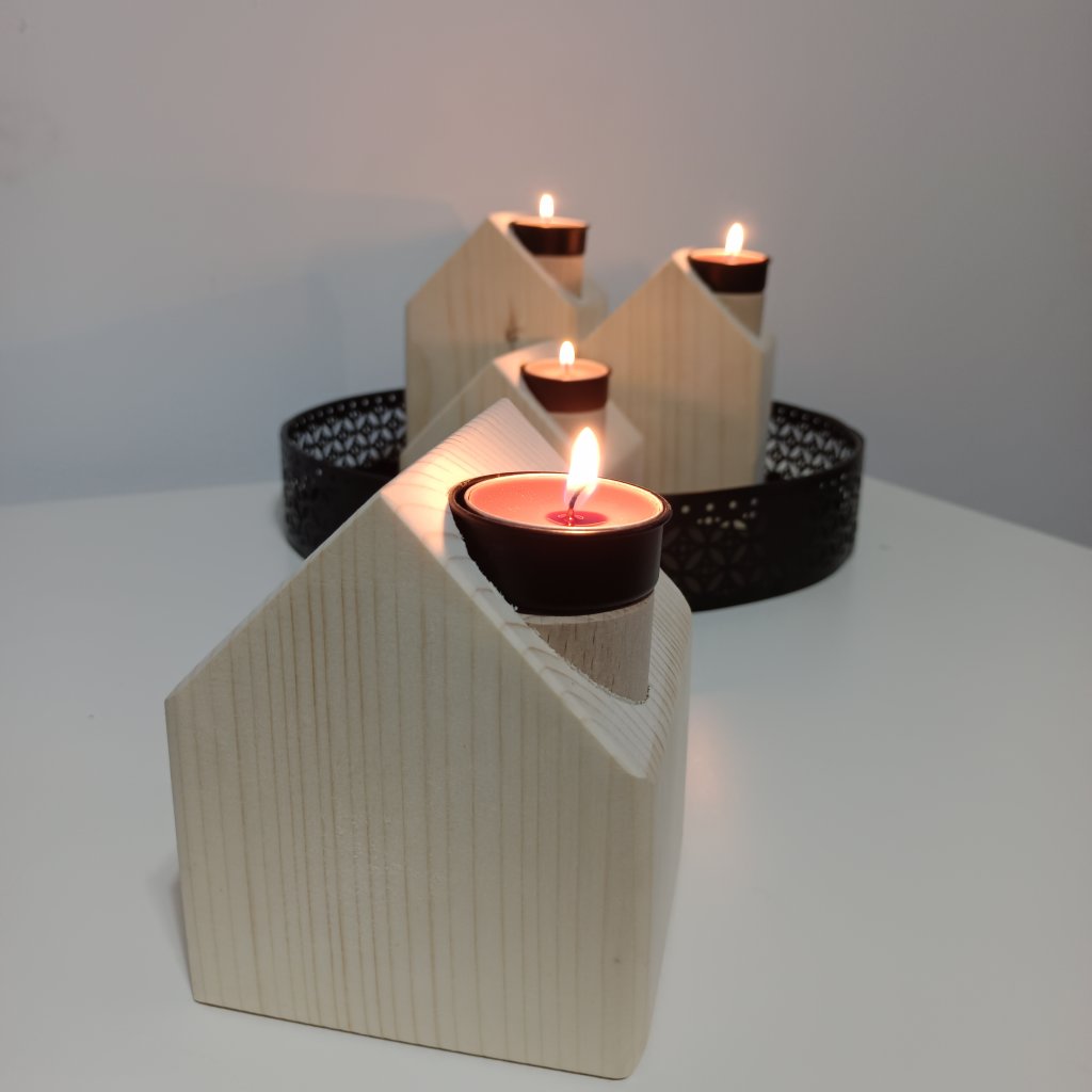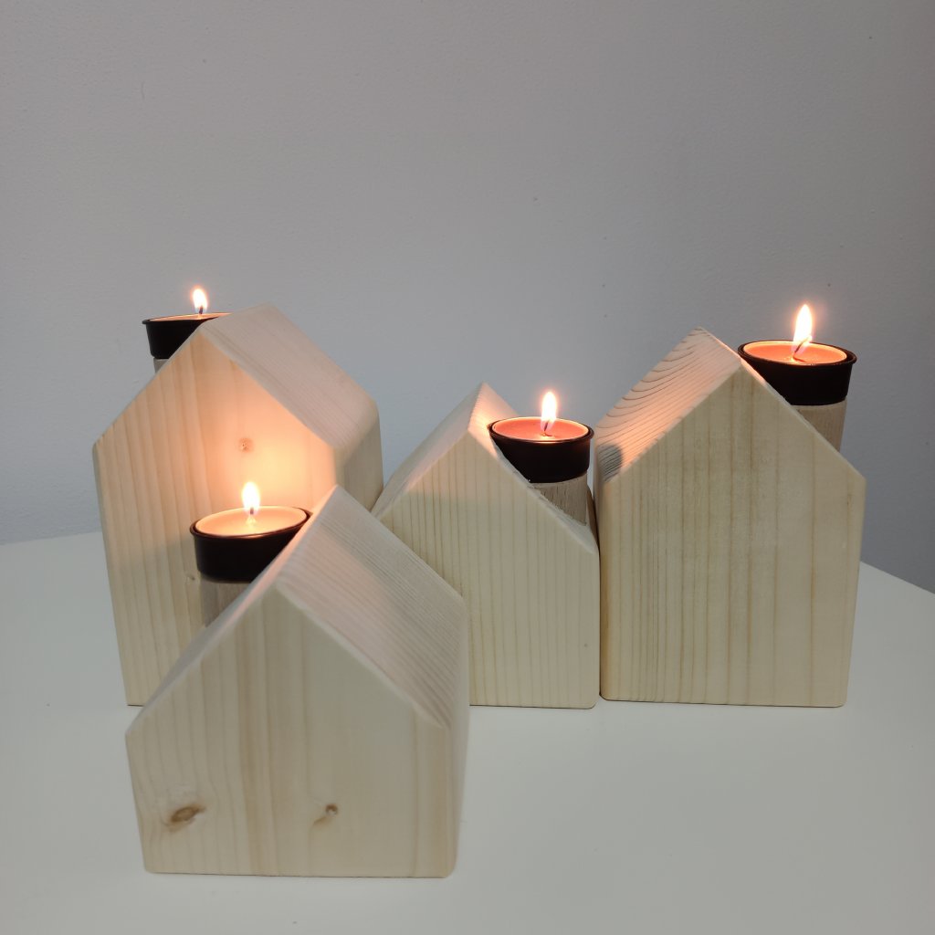 Domeček s širokým komínkem vhodným pro čajovou svíčku nebo zapálení vonných homolí k vytvoření efektu kouřícího komína. Komínky jsou vytvořeny ze dřeva s kovovým nástavcem pro svíčku v černé barvě.