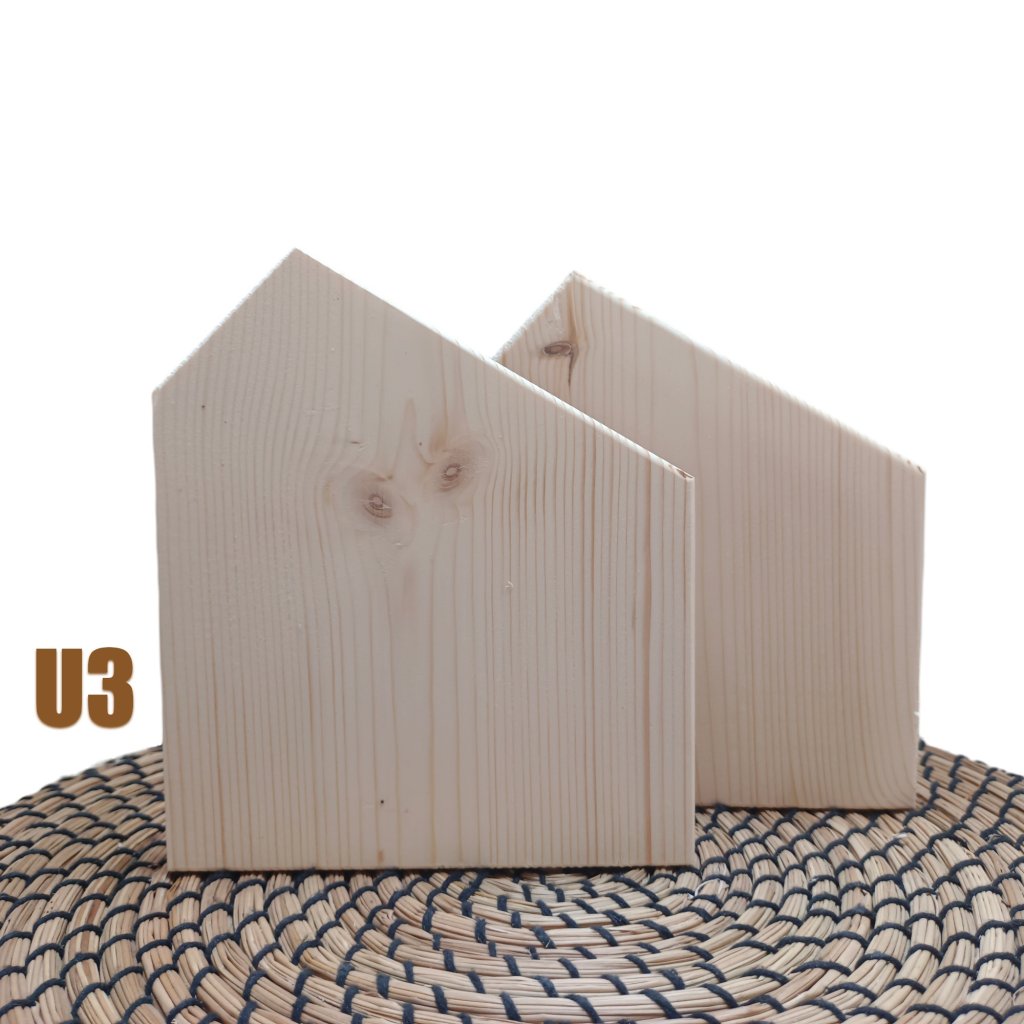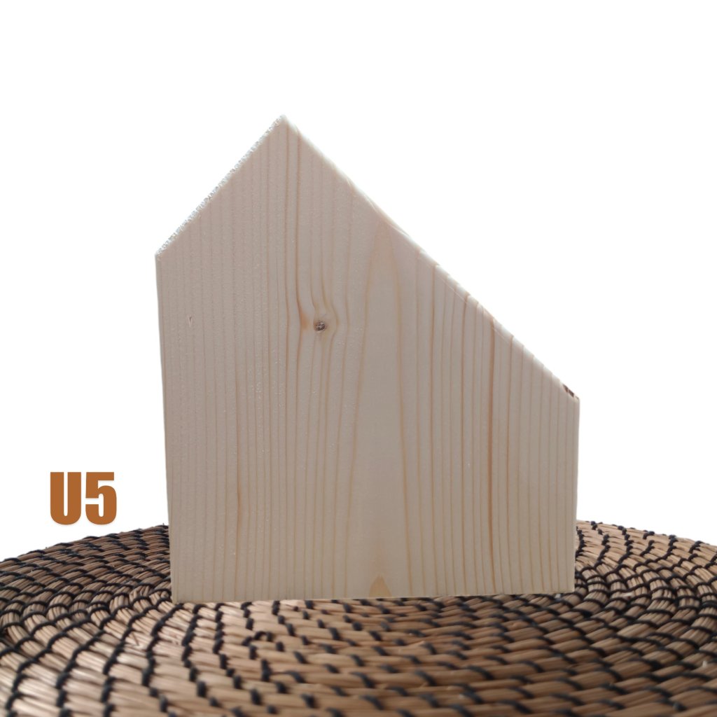 Dřevěný domeček tloušťky 2cm, šířky 14cm a několika výškách. Velká čelní plocha vyzývá k malování. Tento typ domečku je vhodný do truhlíků a květináčů nebo na výrobu panelu na zakrytí truhlíků. Ale využijete je i k postavení na polici nebo tvoření obrazů, ale dalším nápadům se meze nekladou. Vyroben ze smrkového dřeva.