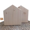 Dřevěný domeček tloušťky 2cm, šířky 14cm a několika výškách. Velká čelní plocha vyzývá k malování. Tento typ domečku je vhodný do truhlíků a květináčů nebo na výrobu panelu na zakrytí truhlíků. Ale využijete je i k postavení na polici nebo tvoření obrazů, ale dalším nápadům se meze nekladou. Vyroben ze smrkového dřeva.