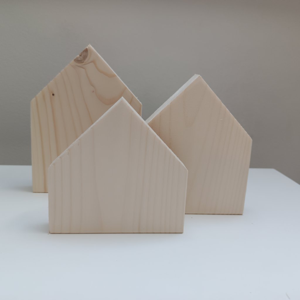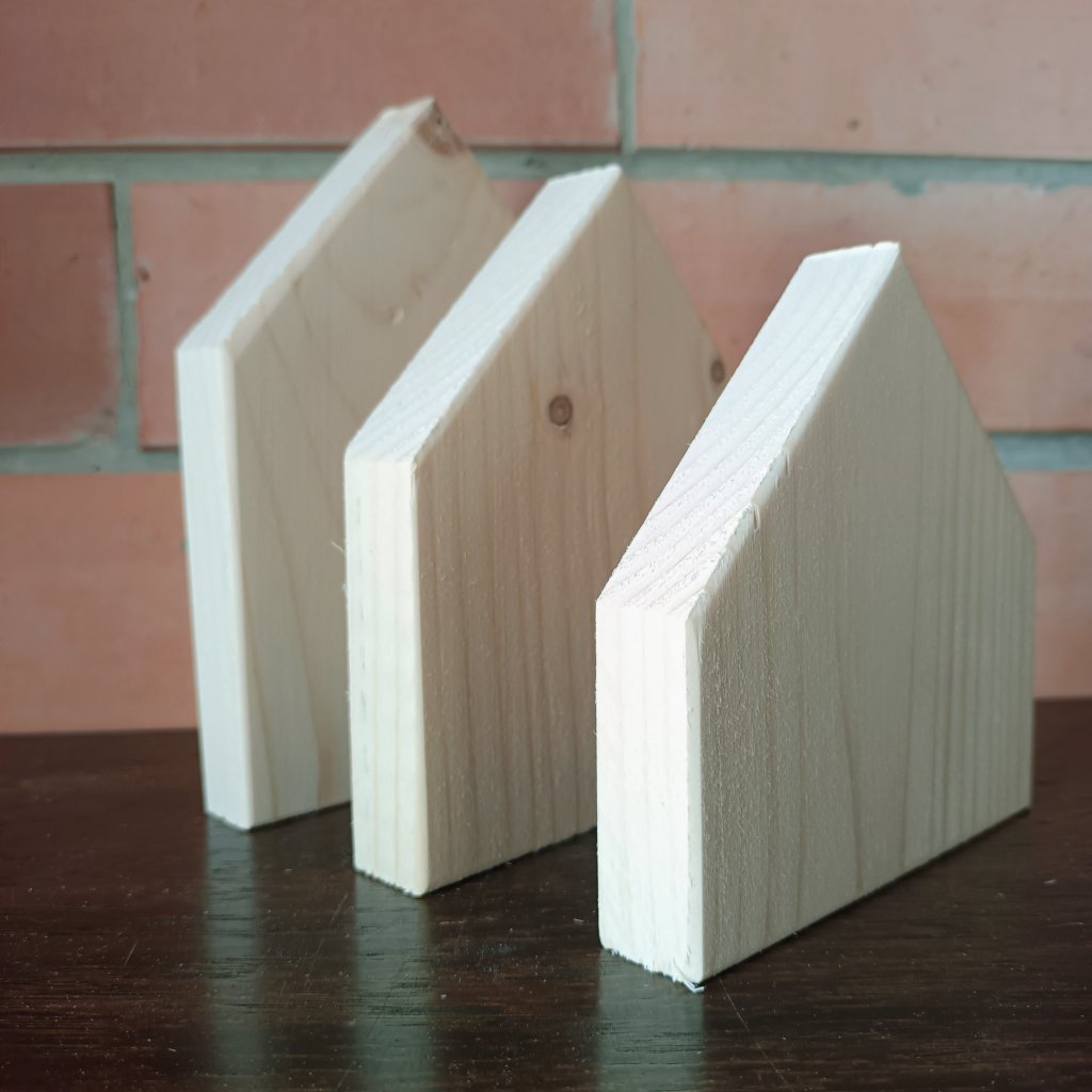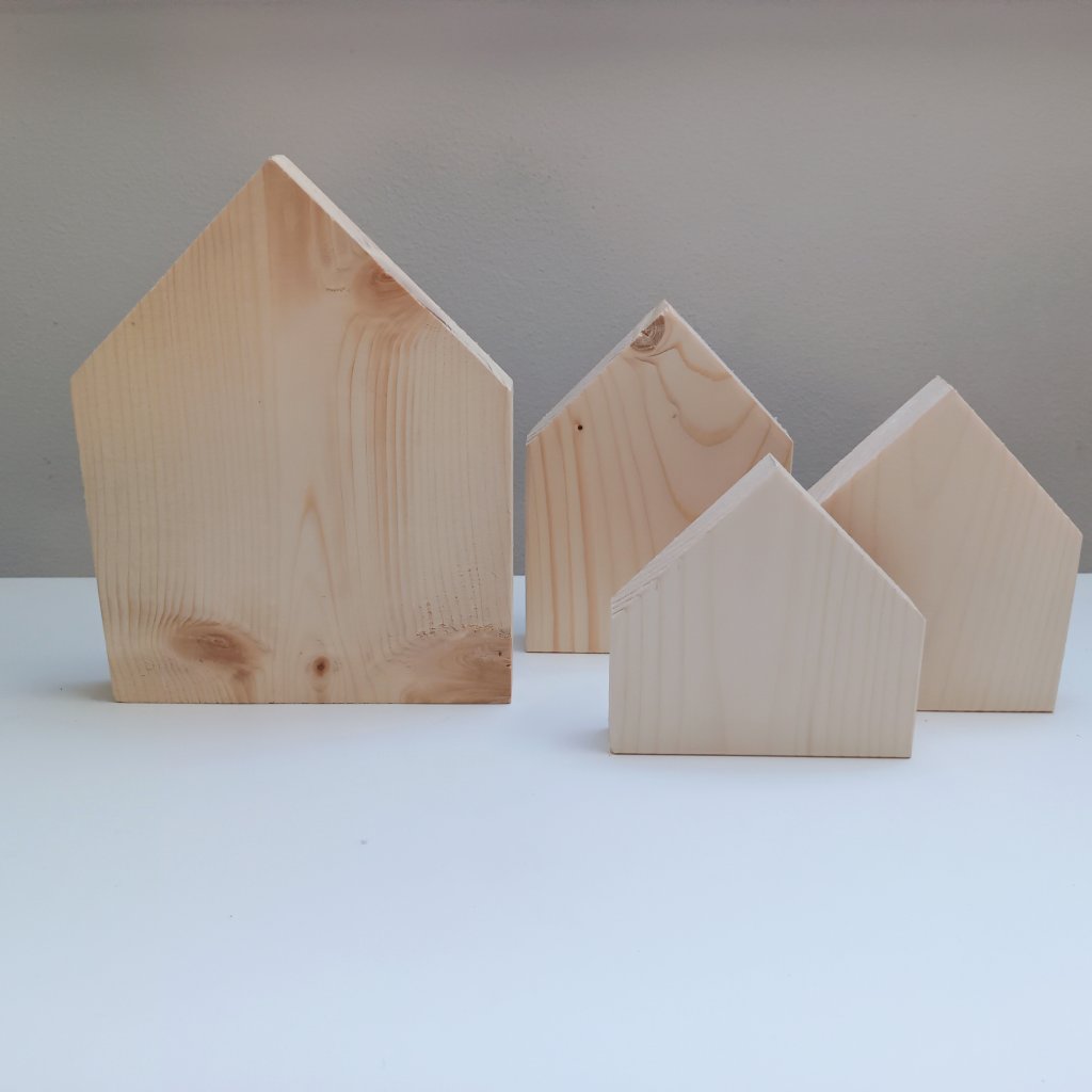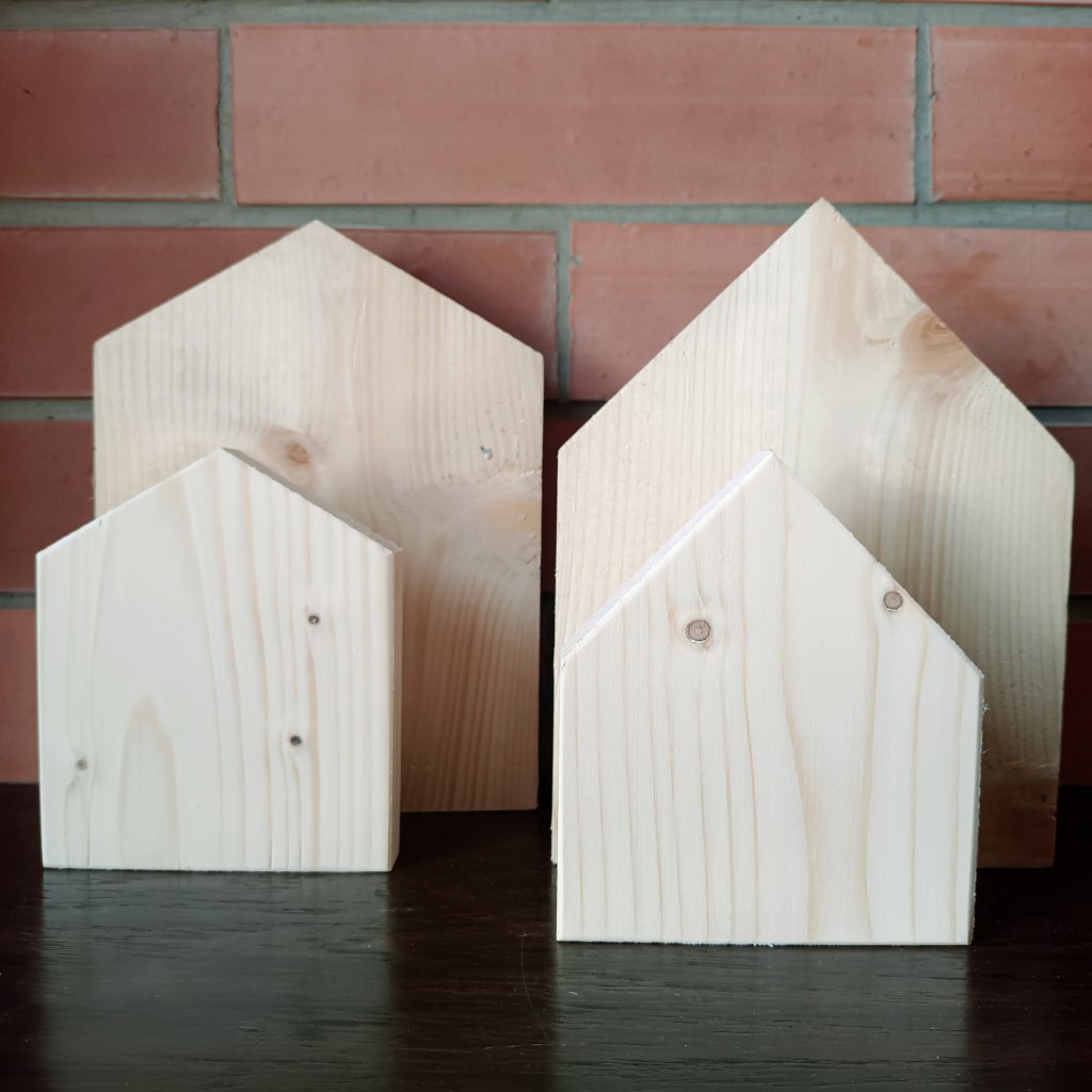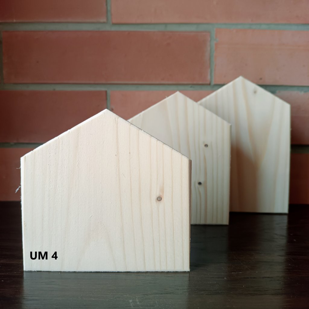 Dřevěný domeček tloušťky 2cm, šířky10 cm a volitelnou výškou. Tento typ domečku je vhodný jako zápich do truhlíků a květináčů nebo na výrobu panelu na zakrytí truhlíků. Ale využijete je i k postavení na polici nebo tvoření obrazů, ale dalším nápadům se meze nekladou. Vyroben ze smrkového dřeva.