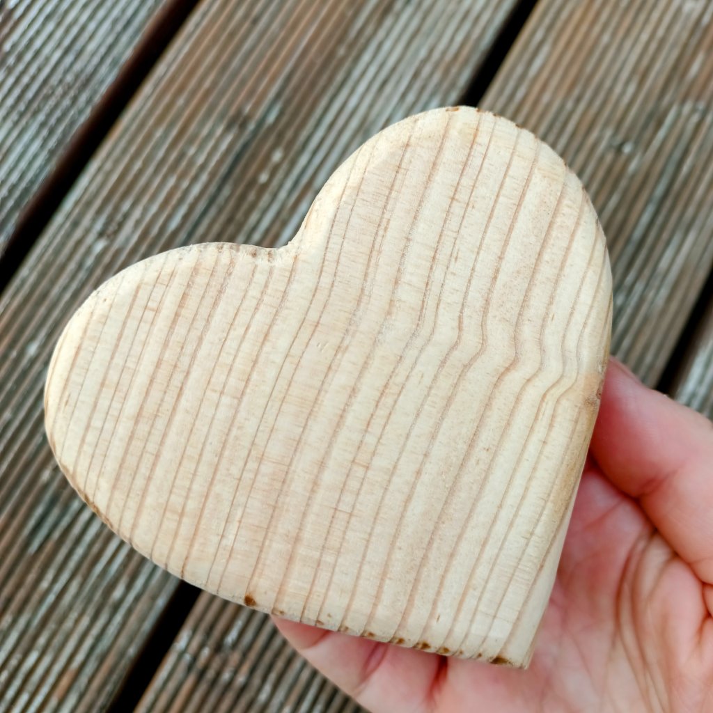 Hodí pro jakýkoli Váš osobní projekt do kterého chcete "dát srdce". Každý kus je díky přirozené kresbě dřeva jedinečný.