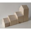 Všechny domečky jsou obroušené a mají zaoblené hrany. Vyrobeno ze smrkového nebo modřínového dřeva.