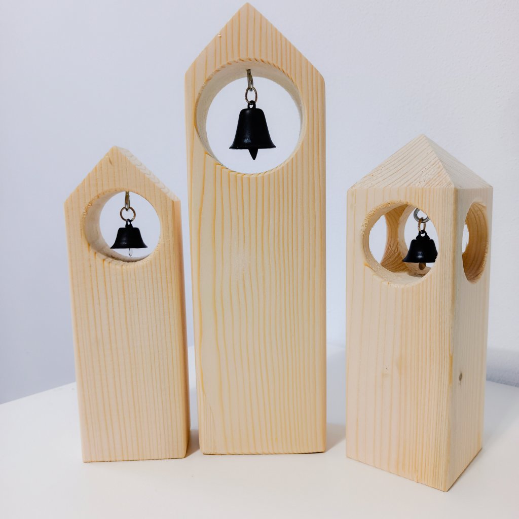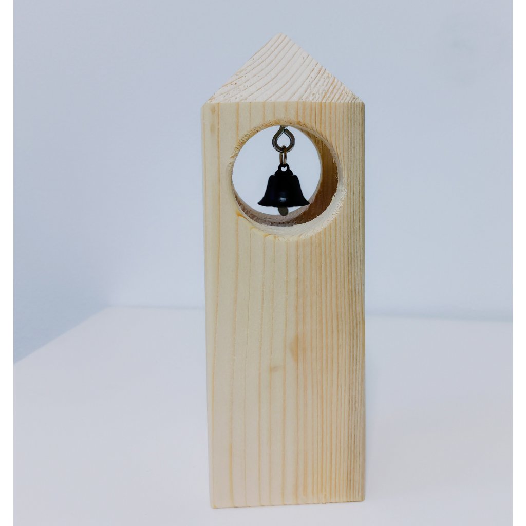 Tato dřevěná zvonice je vysoká pouhých 18cm, takže se lépe než její větší sestra hodí k domečkům typu 1-20. Dřevěná zvonice se skutečným zvonem se uplatní jako samostatná akustická dekorace a může se stát novým oživujícím prvkem vaší dřevěné vesničky.