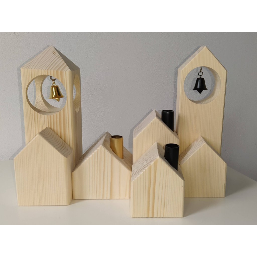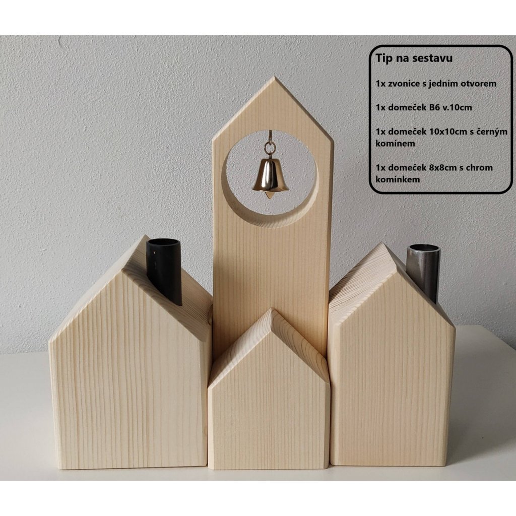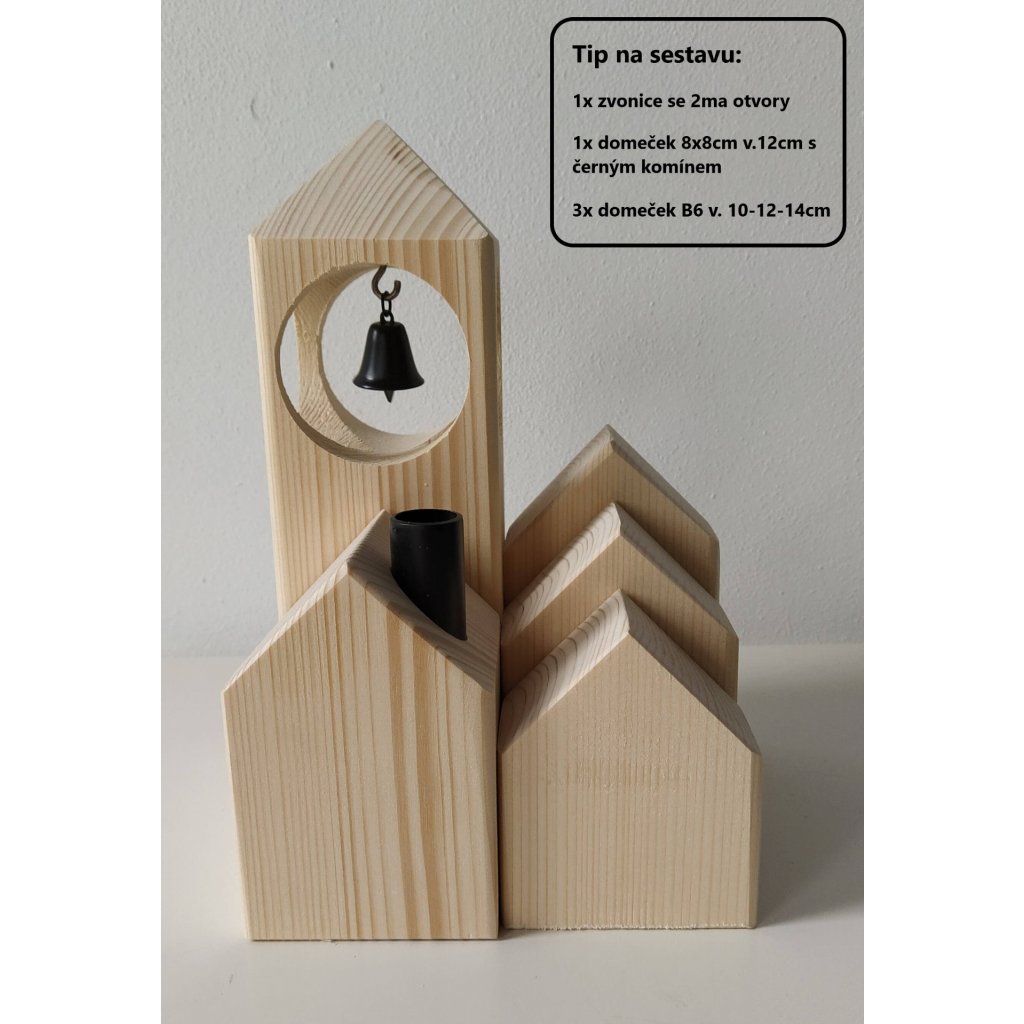 Dřevěná zvonice se skutečným zvonem není jen němá a pěkná na pohled. Svolejte zvoněním rodinu k večeři, pošlete děti do postýlek, nebo si jen užívejte uklidňující zvuk zvonečku. Určitě se uplatní jako samostatná akustická dekorace a může se stát novým oživujícím prvkem vaší dřevěné vesničky.