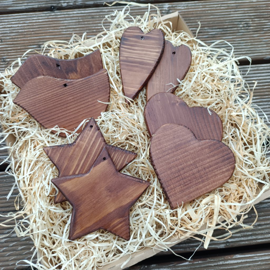 Větší dřevěný perníček ze smrkového dřeva tloušťky 1 cm s průvlekem na zavěšení. Perníčky můžete využít k dozdobení věnců, vazeb nebo vánočního stromečku. Perníčky jsou natřené do "perníčkově hnědé" barvy pro vytvoření efektu lesklého kakaového perníčku. Jsou vhodné k dalšímu zdobení akrylovými barvami nebo fixy, ale krásné jsou i bez dalších úprav.