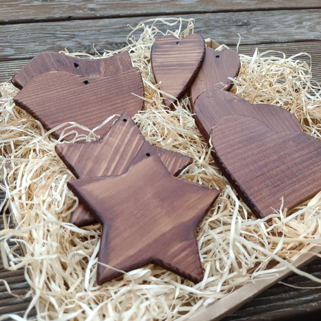 Větší dřevěný perníček ze smrkového dřeva tloušťky 1 cm s průvlekem na zavěšení. Perníčky můžete využít k dozdobení věnců, vazeb nebo vánočního stromečku. Perníčky jsou natřené do "perníčkově hnědé" barvy pro vytvoření efektu lesklého kakaového perníčku. Jsou vhodné k dalšímu zdobení akrylovými barvami nebo fixy, ale krásné jsou i bez dalších úprav.