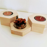 Tento nápad vás bude bavit. Je skoro bez práce a krásně voní. Pořiďte si jen několik hexagonových svícnů, barevné čajové svíčky a jednu skleněnou misku pod čajovou svíčku. Vašim tvůrčím vkladem potom bude procházka barevnou přírodou, sběr a sušení různobarevných okvětních lístků, troška kuchyňské alchymie s kořením a máte voňavé potpourri, kterým skleněnou misku napníte.