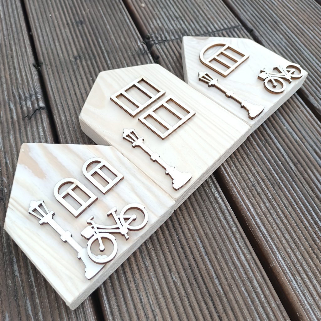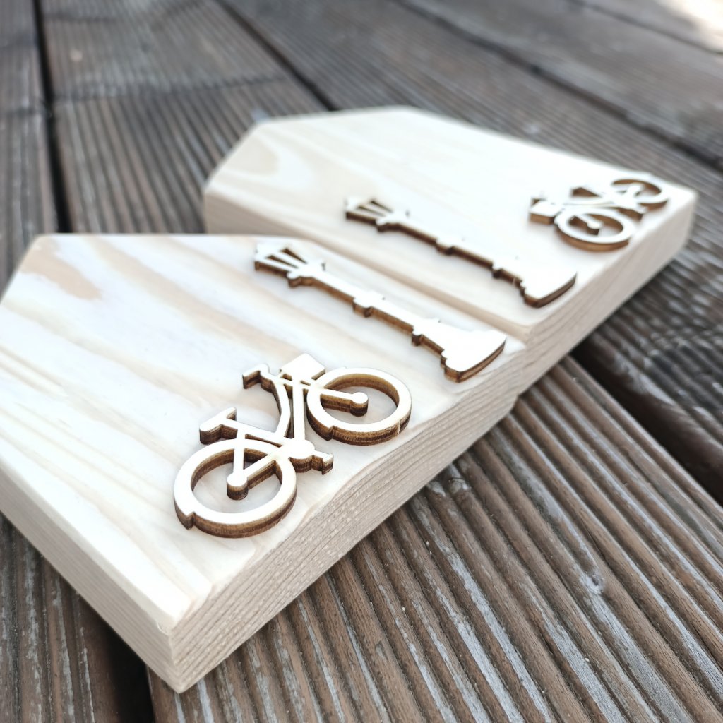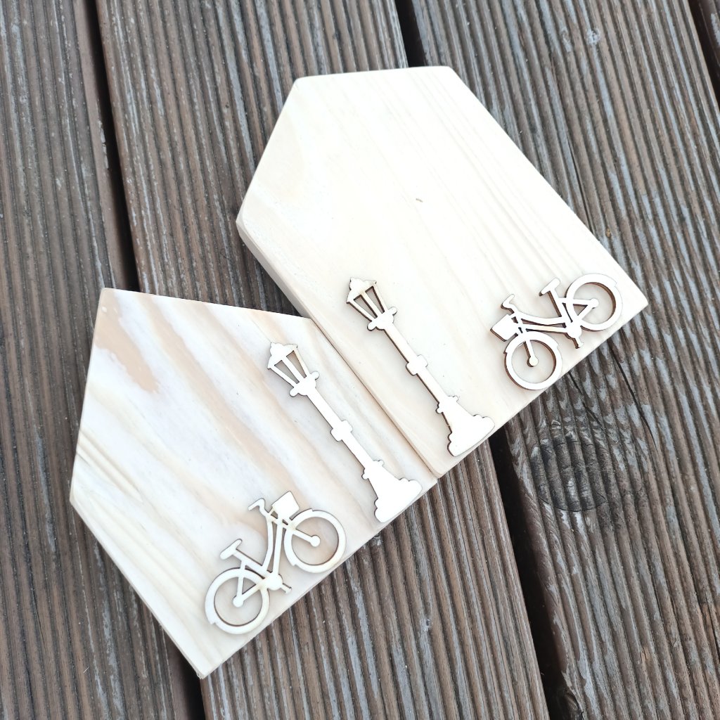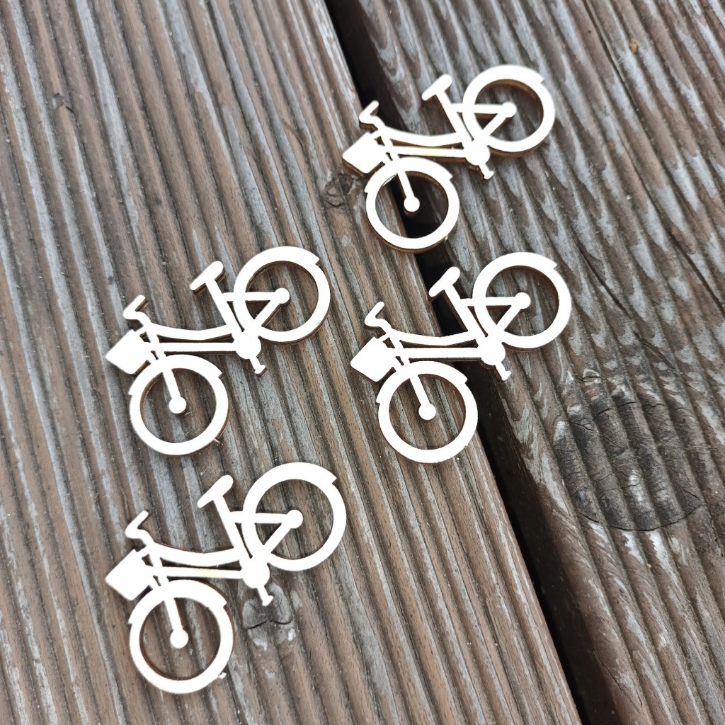 Jízdní kolo bez povrchové úpravy vyrobeno ze světlé překližky. Vyřezáváno laserem (tmavé hrany). Vhodný doplněk pro dekorování domečků.