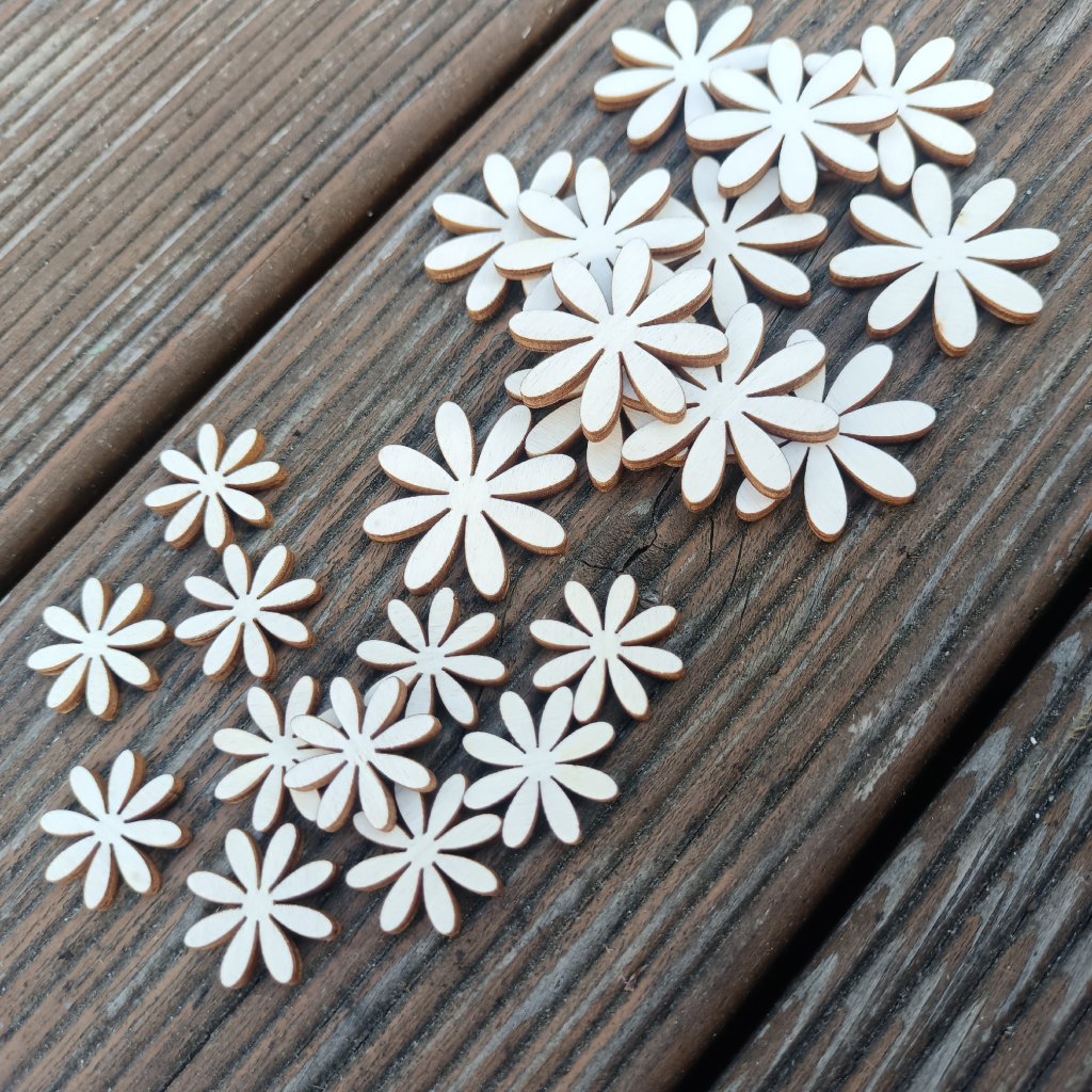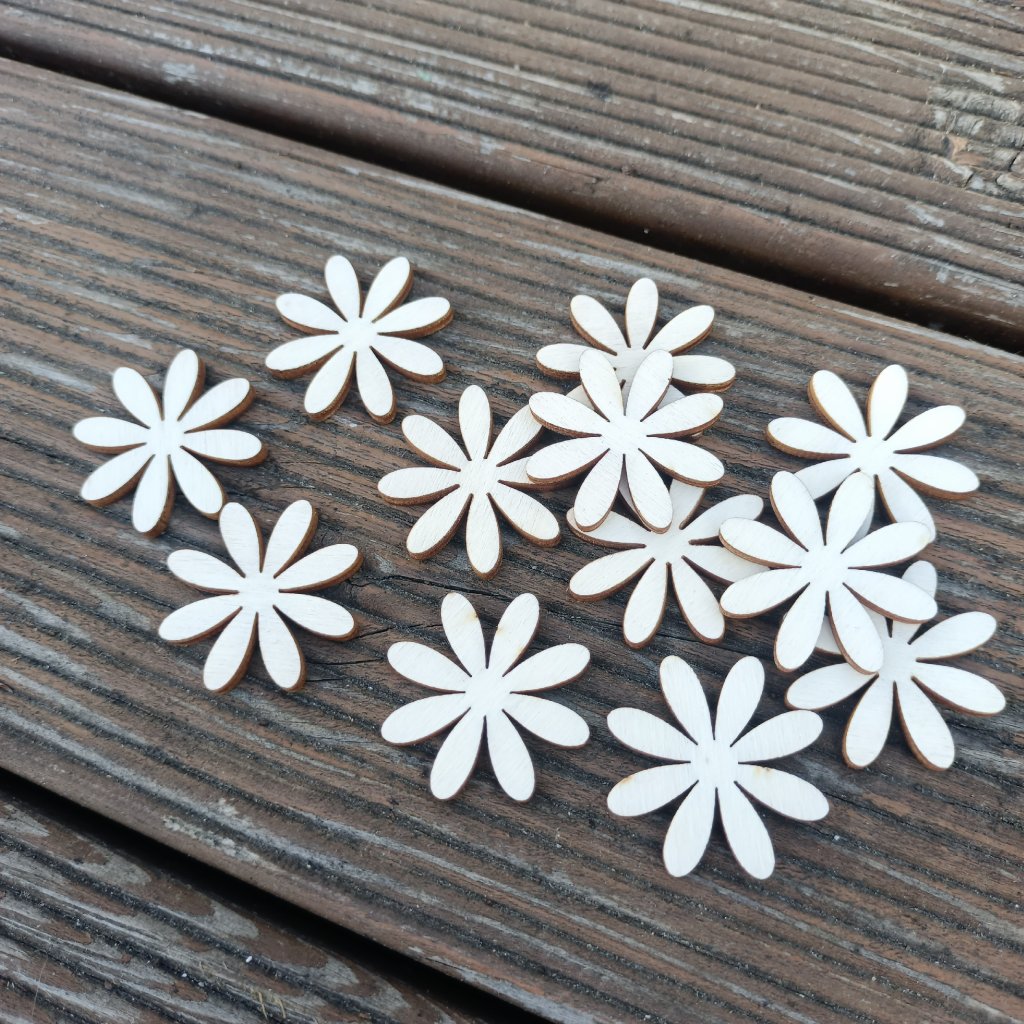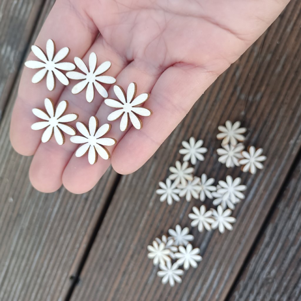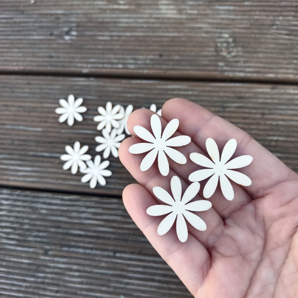 Kytička z 3mm překližky (kopretina/sedmikráska), laserem vyřezaná. Velikost květu 2-3 cm. S více lístky. Skvělý doplněk pro domečky, alba a jarní tvoření!