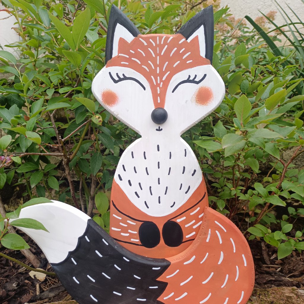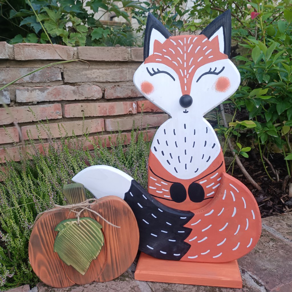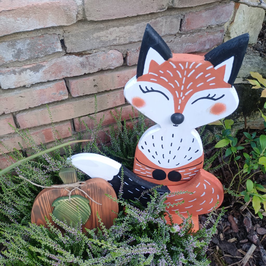 Liška ze smrkového dřeva je vrstveně lepená ze tří dílů pro 3D efekt a barvená zalakovanou akrylovou barvou. Hodí se jak do interiéru, tak i do exteriéru. Je sestavená z postavičky, ocasu a podstavce po větší stabilitu. Barevně vynikne v podzimním období symbolickou podzimní načervenalou barvou a také v zimě jako kontrast bílého sněhu. Na podzim ji ozdobte dýněmi, podzimně zbarveným listím nebo vřesem, v zimě ji bude slušet malý stromeček a šála.