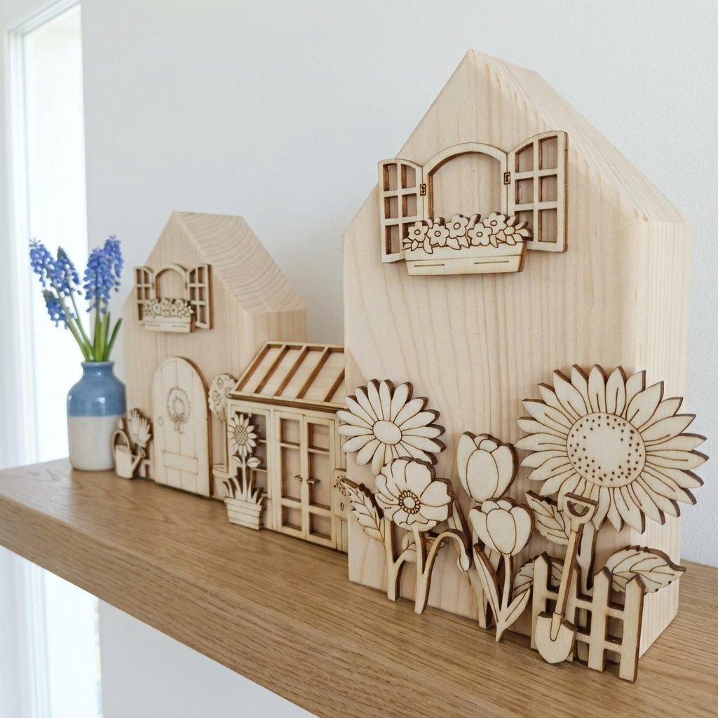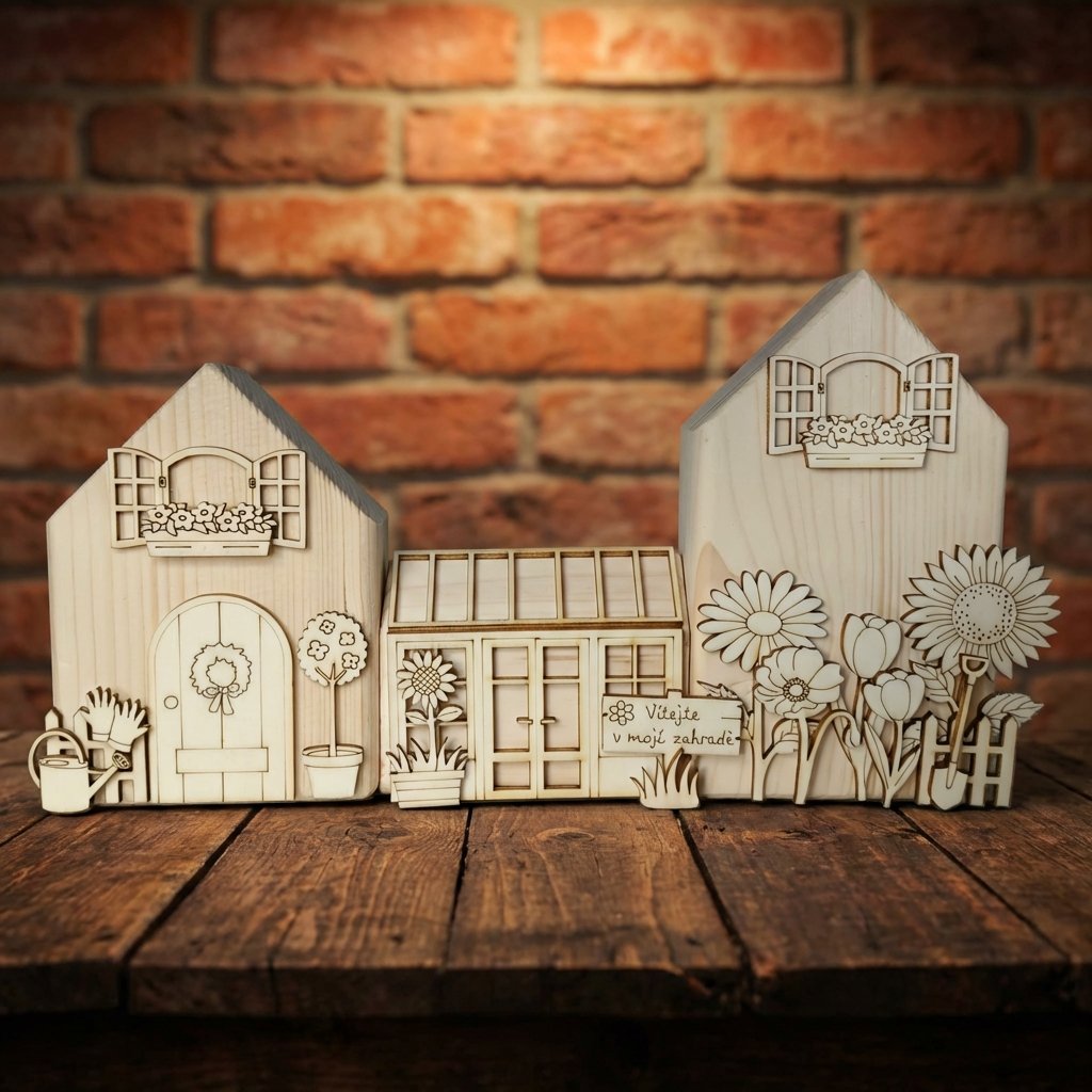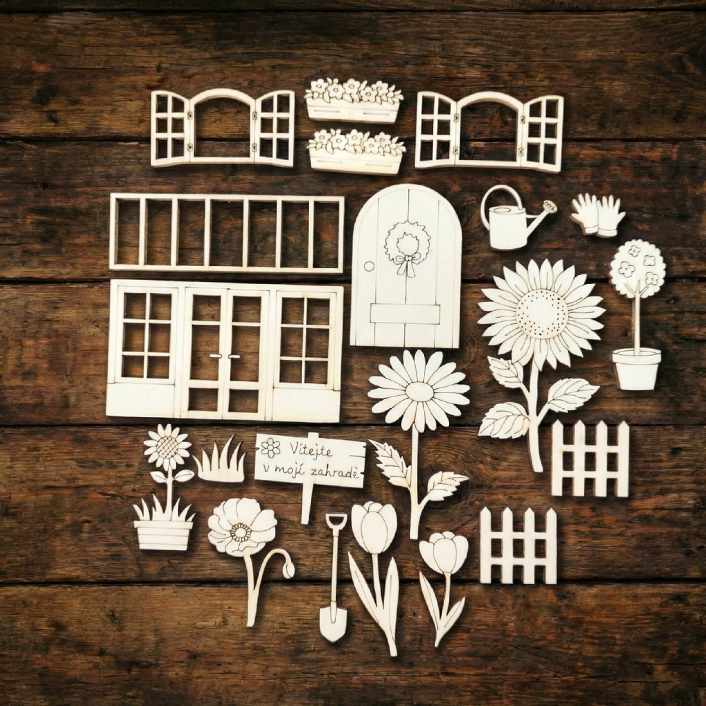 Detailně propracované výřezy z překližky s tématem zahrada. Jednotlivé výřezy byly navrženy u nás a jsou tedy jedinečné - žádná veřejná koupená šablona, ale originál od nákresu až laserový výřez.