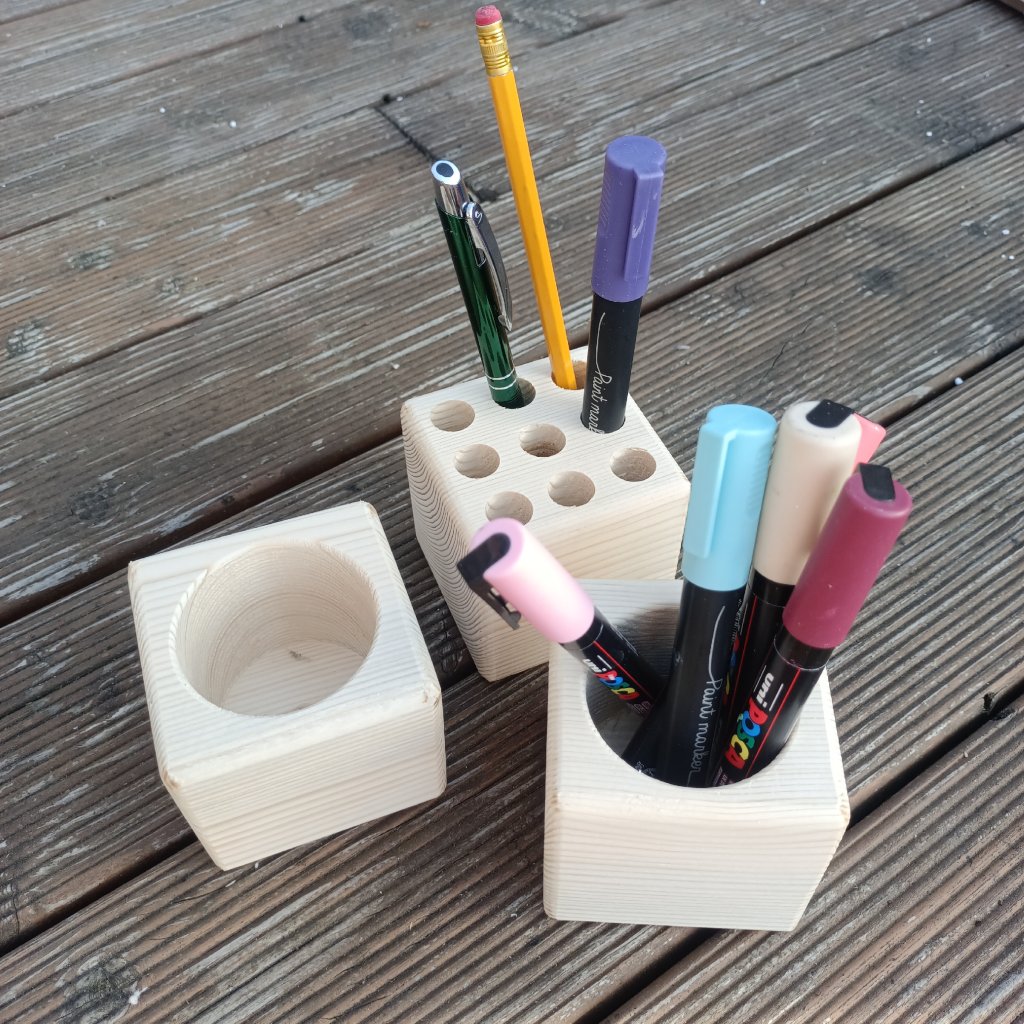 S tímto dřevěným pastelkovníkem budou mít všechny tužky a pastelky své místo. Vyberte si variantu s jedním otvorem pro malého školáka a celou jeho uměleckou sadu pastele nebo s devíti otvory pro jednotlivé uložení tužek na pracovním stole. Děti si ho zamilují, protože si ho mohou pomalovat, polepit samolepkami, nebo ozdobit dle vlastní fantazie. Z masivního smrkového dřeva, připravený k okamžitému použití, nebo k dotvoření.