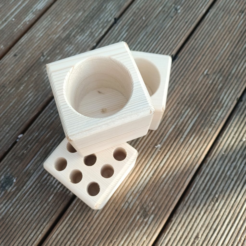 S tímto dřevěným pastelkovníkem budou mít všechny tužky a pastelky své místo. Vyberte si variantu s jedním otvorem pro malého školáka a celou jeho uměleckou sadu pastele nebo s devíti otvory pro jednotlivé uložení tužek na pracovním stole. Děti si ho zamilují, protože si ho mohou pomalovat, polepit samolepkami, nebo ozdobit dle vlastní fantazie. Z masivního smrkového dřeva, připravený k okamžitému použití, nebo k dotvoření.