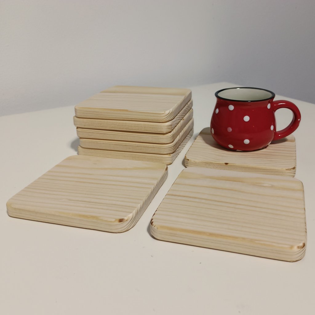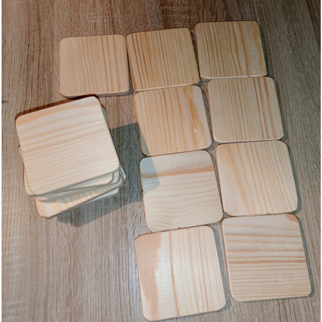 Podtácky tvaru čtverce se zaoblenými rohy a oblými hranami můžete dotvořit podle vlastní fanzazie a vytvořit tak vlastnoruční dárek či dekoraci nebo je můžete použít k další tvorbě. Co všechno se dá z takových podtácků vytvořit? Poskládejte třeba "perníkovou" chaloupku, pexeso nebo namalujte ozdoby na stromeček, záleží jen na Vás.