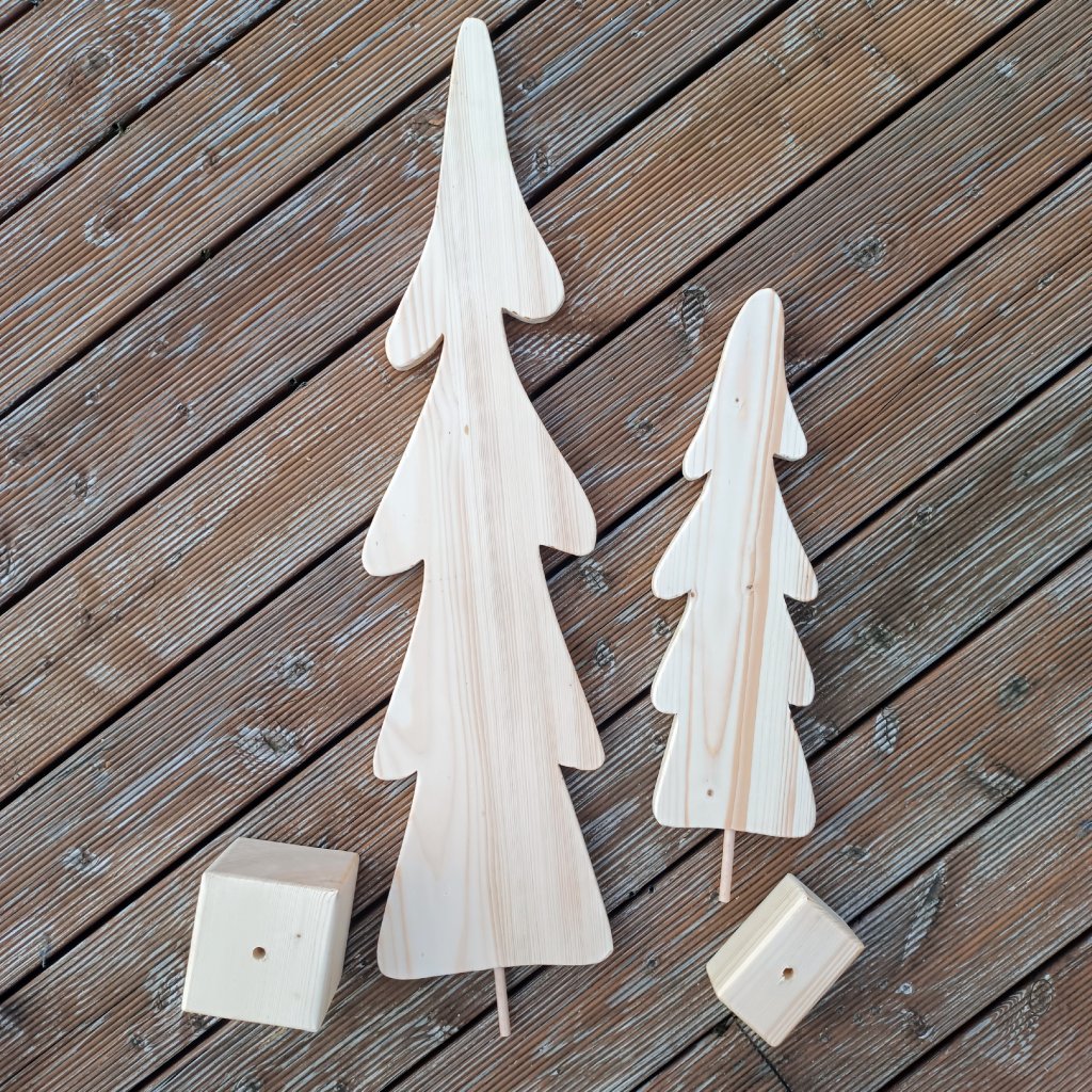 Větší stromeček: 85 x 19 x 2 cm (podstavec 10 x 10 x 10 cm)
