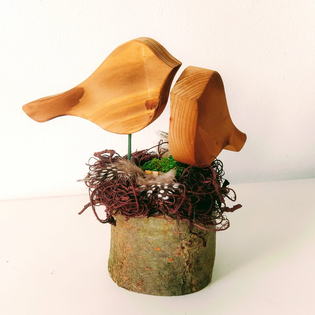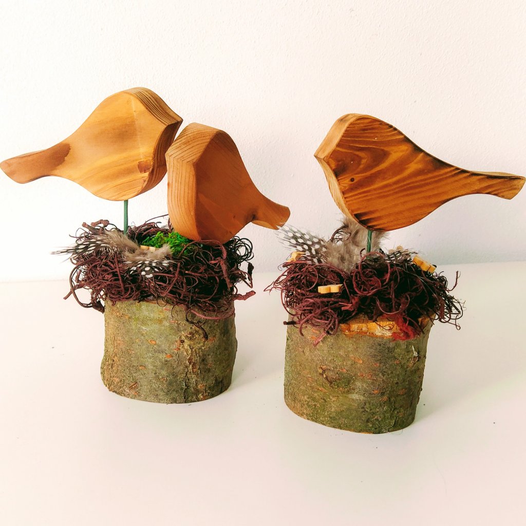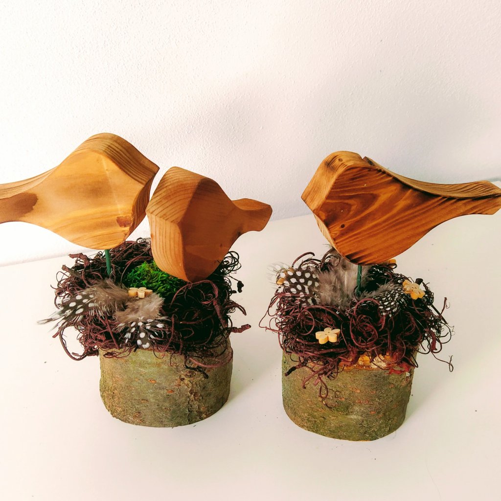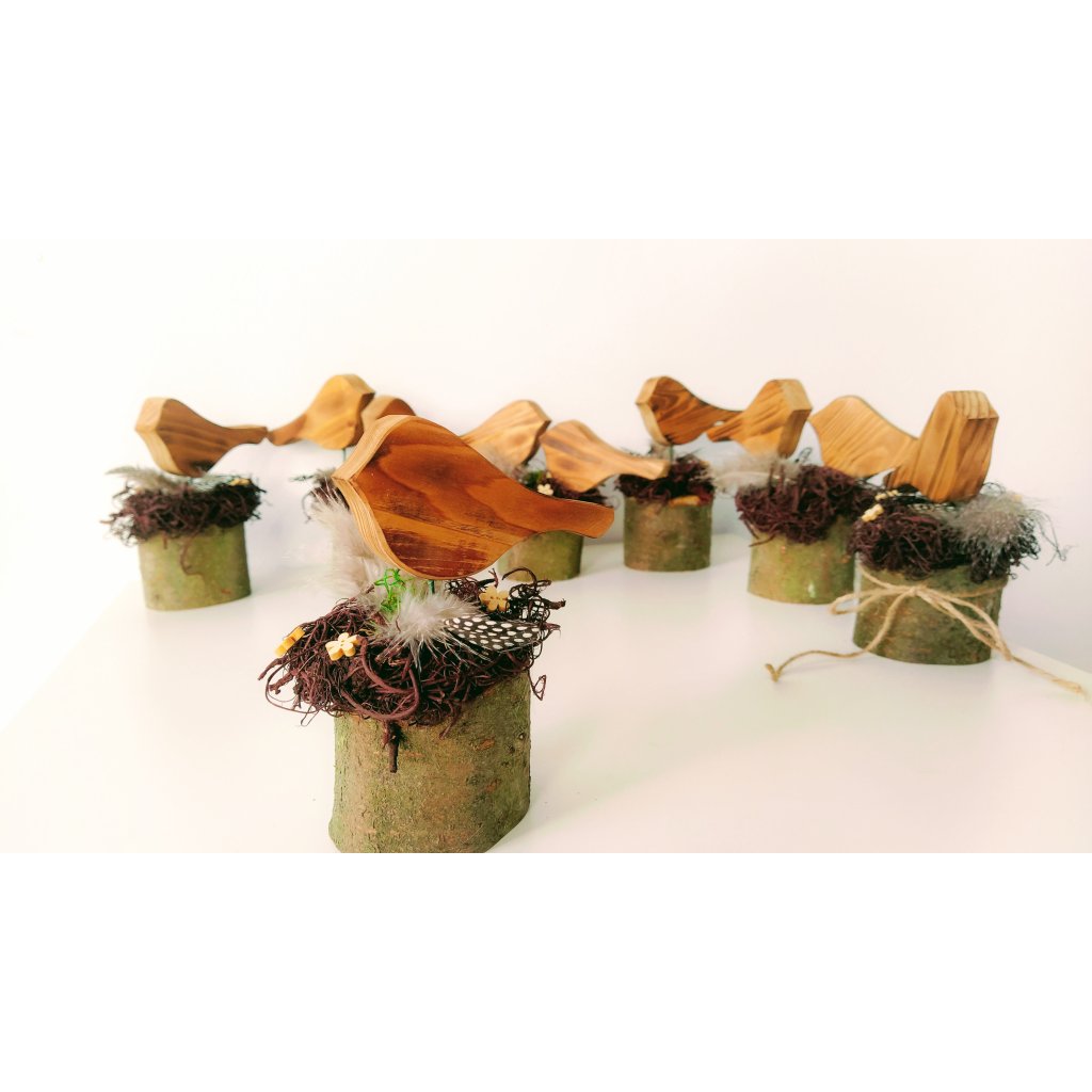 Dřevěná dekorace - ptáček v hnízdě je ručně vytvořena z přírodních materiálů. Ptáček je upraven technikou opalování a moření do přírodních tónů, doplněno dřevěnými doplňky, pírky, stabilizovaným mechem. Vyrobeno ze smrkového dřeva a přírodní kulatiny.