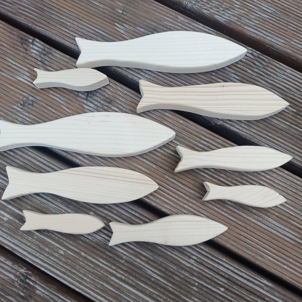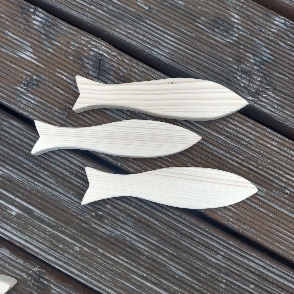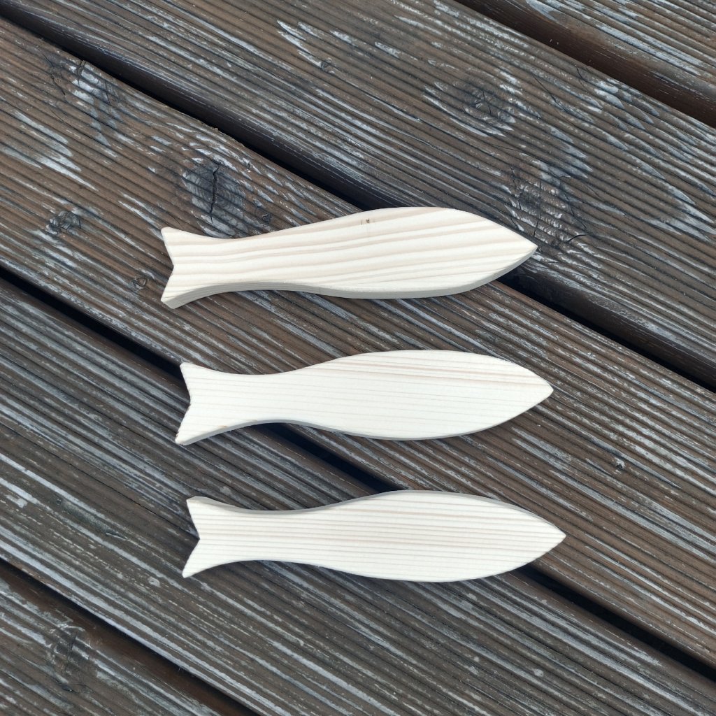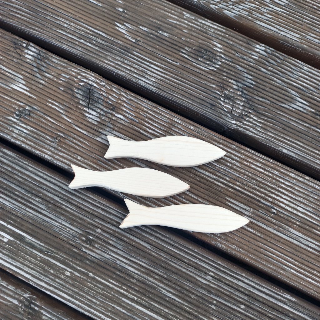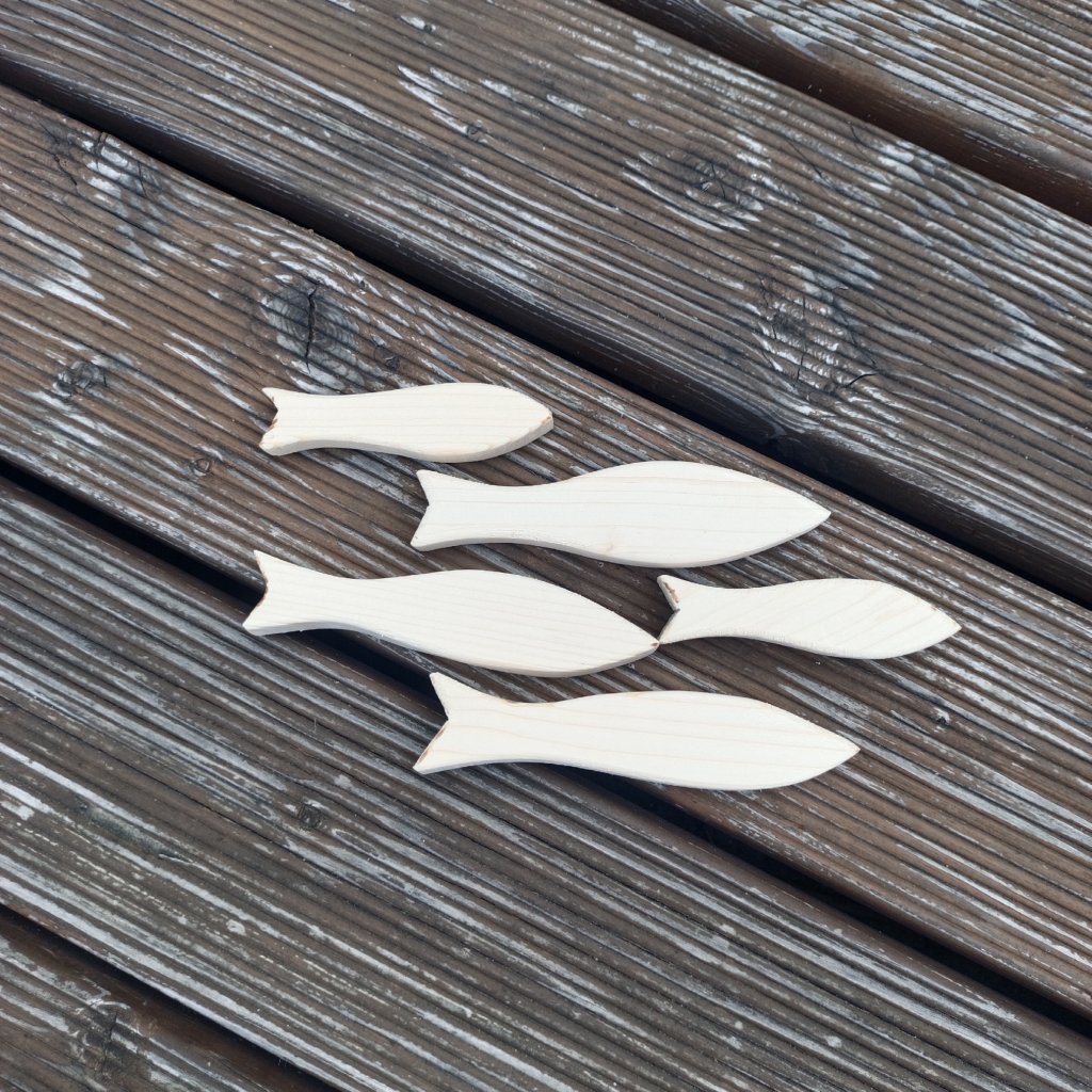Sardinky ze smrkového dřeva o tloušťce 2cm se hodí jak jednotlivě, tak ke skupinové dekoraci s letním motivem.