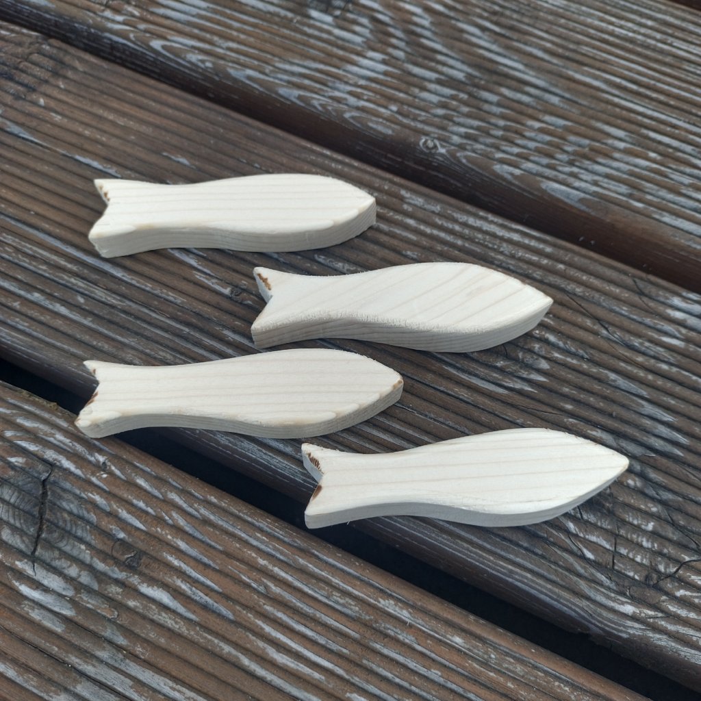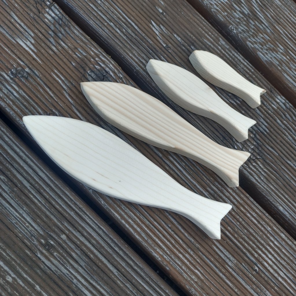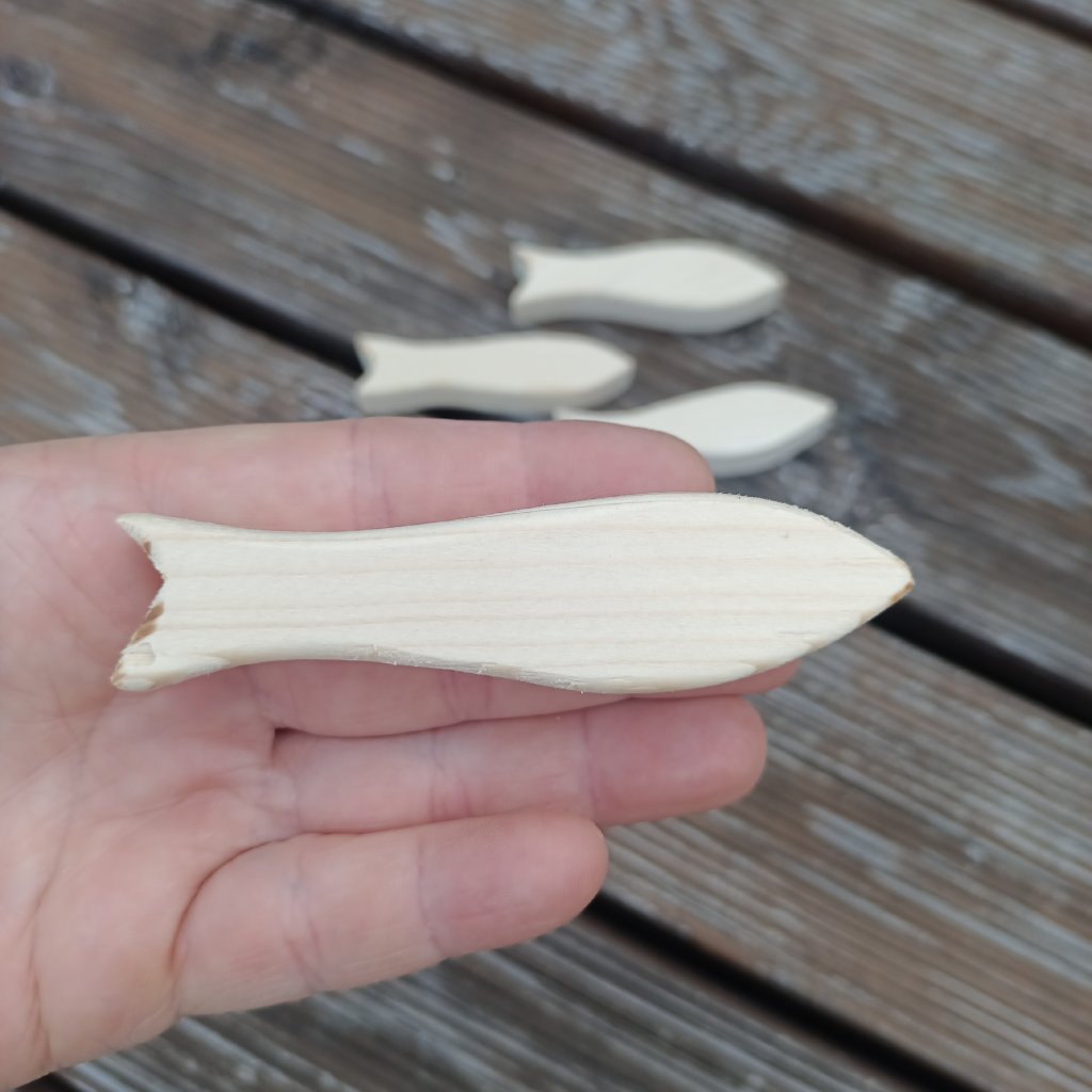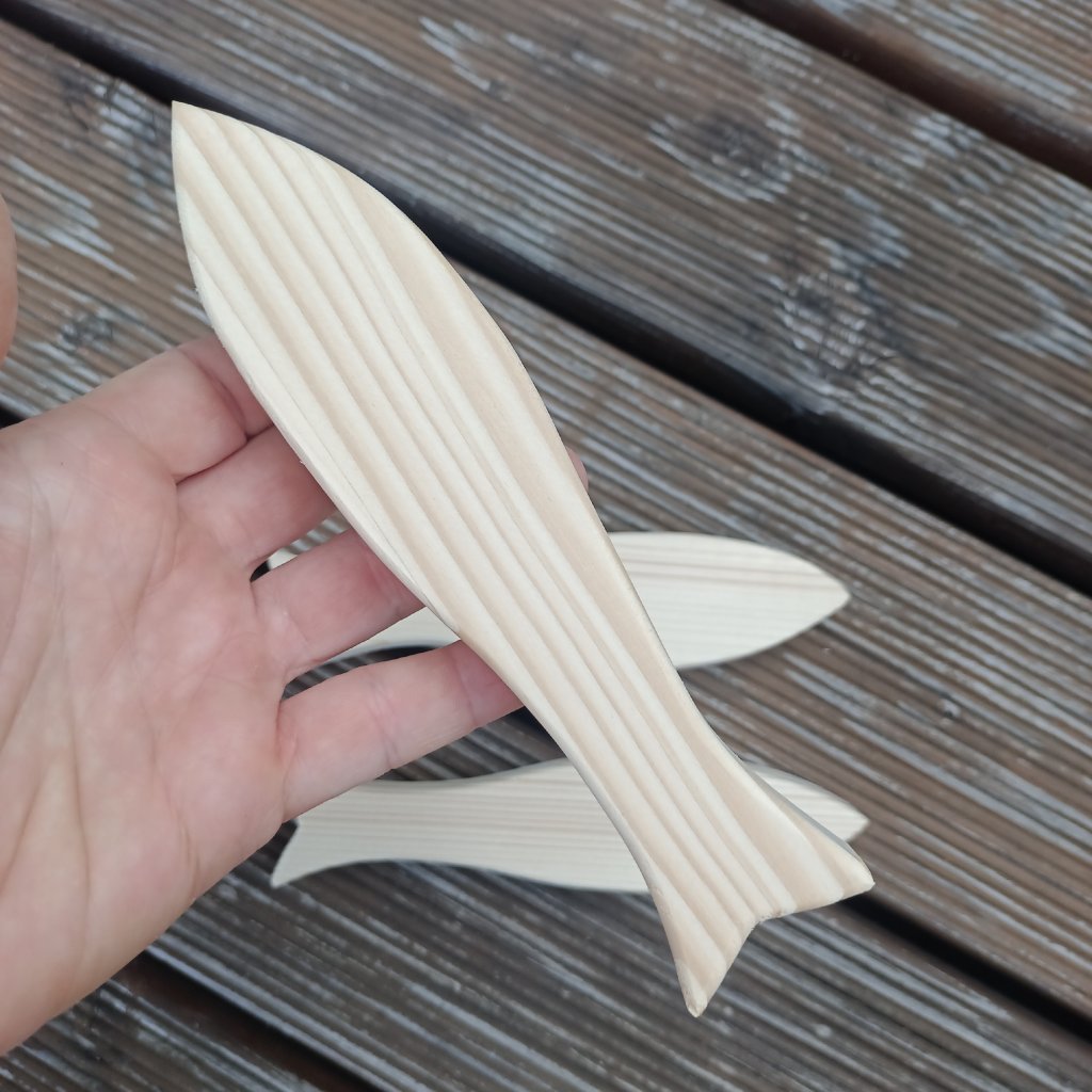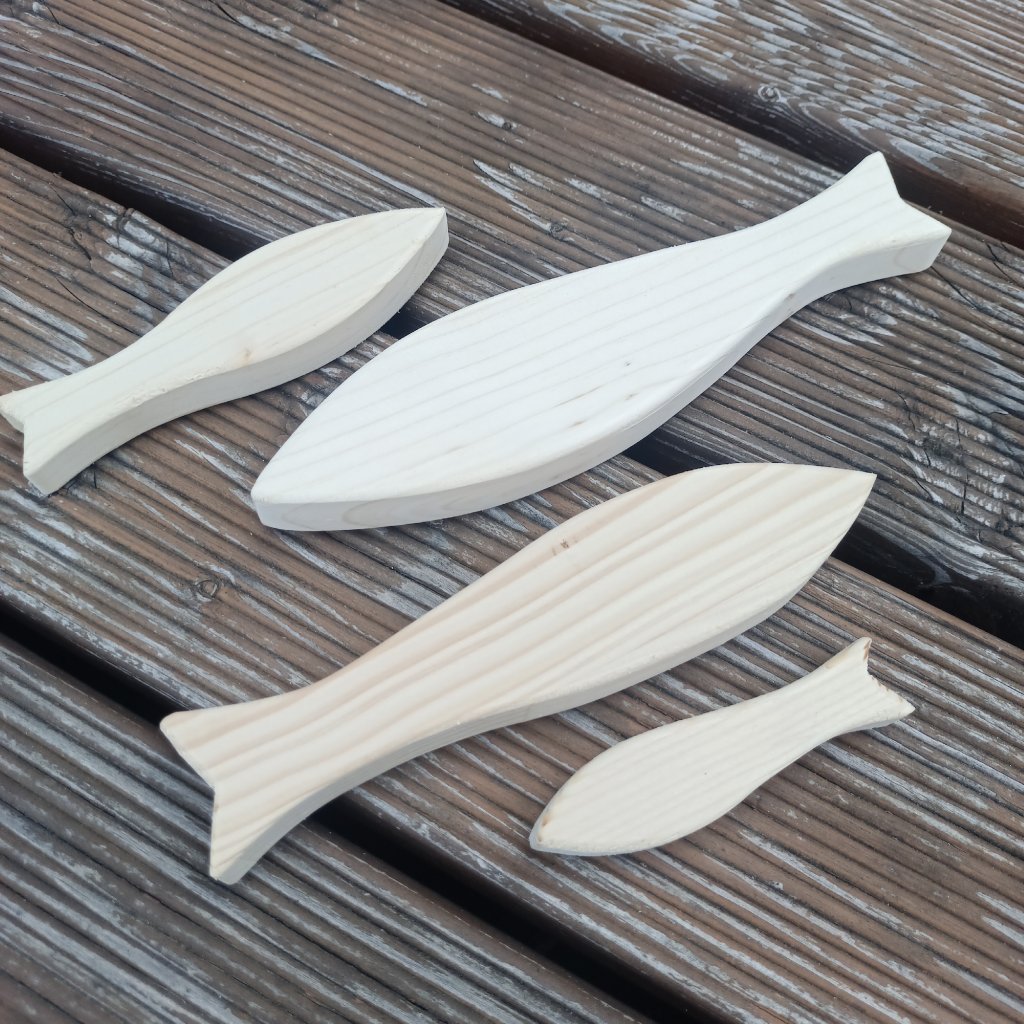 Sardinky ze smrkového dřeva o tloušťce 2cm se hodí jak jednotlivě, tak ke skupinové dekoraci s letním motivem.