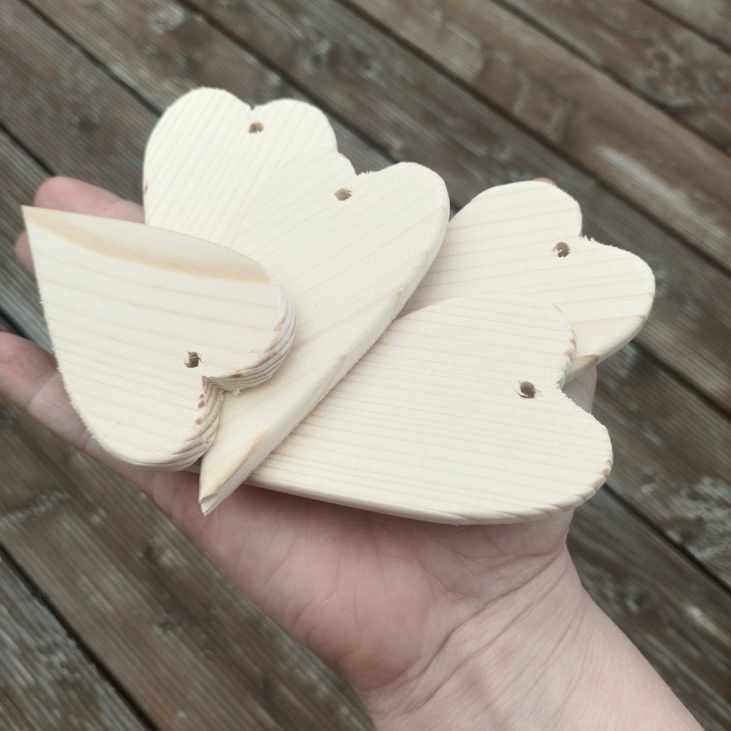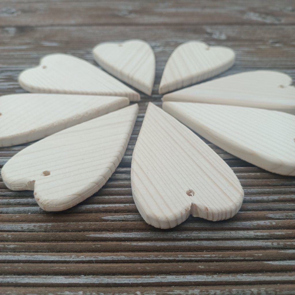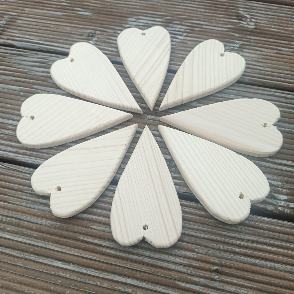 Srdíčko z čistého dřeva je tvarem užší a delší. Hodí se především k dekoraci věnců, stromečku, nebo výrobě zvonkohry. Srdce je s průvlekem pro navlečení provázku nebo drátku k zavěšení.
