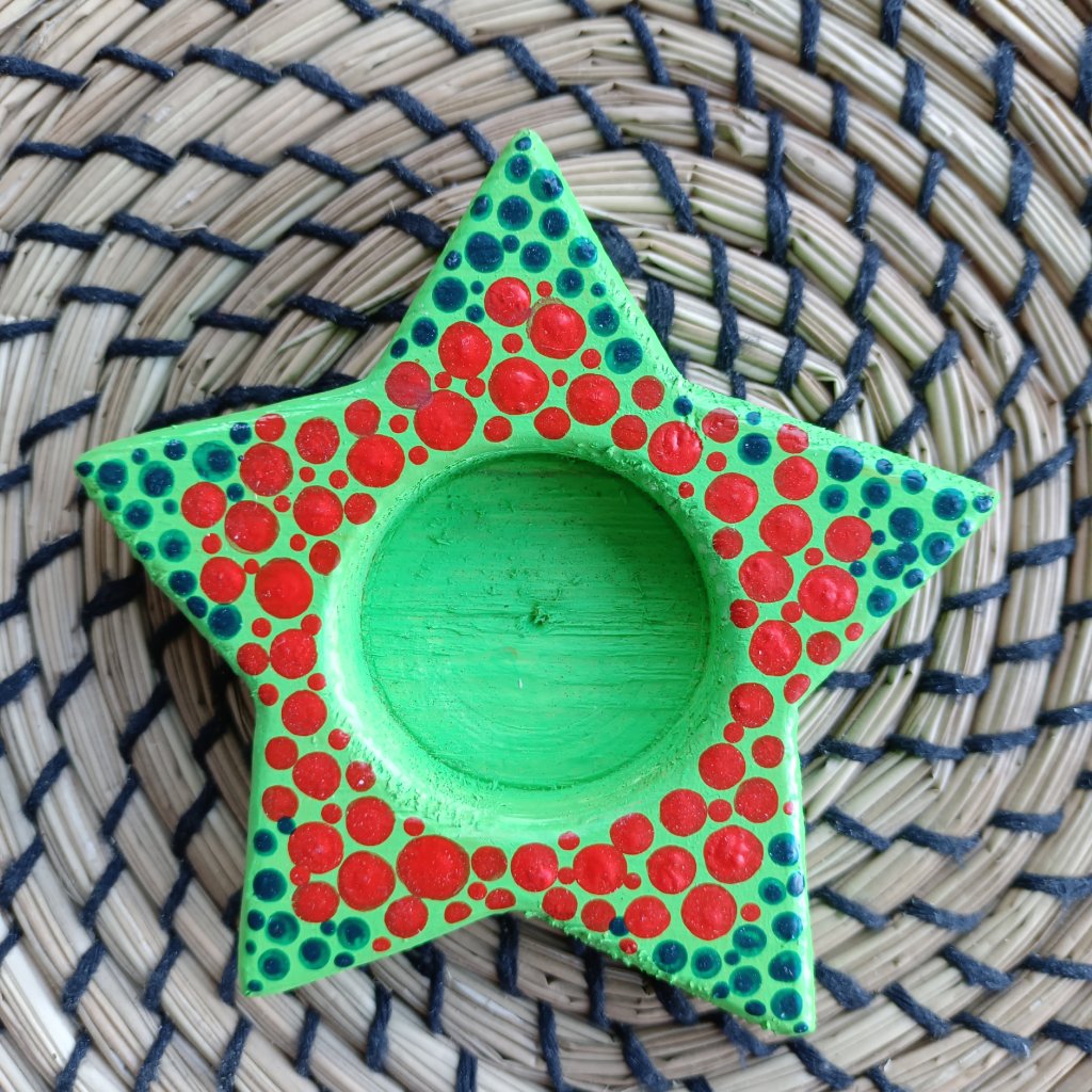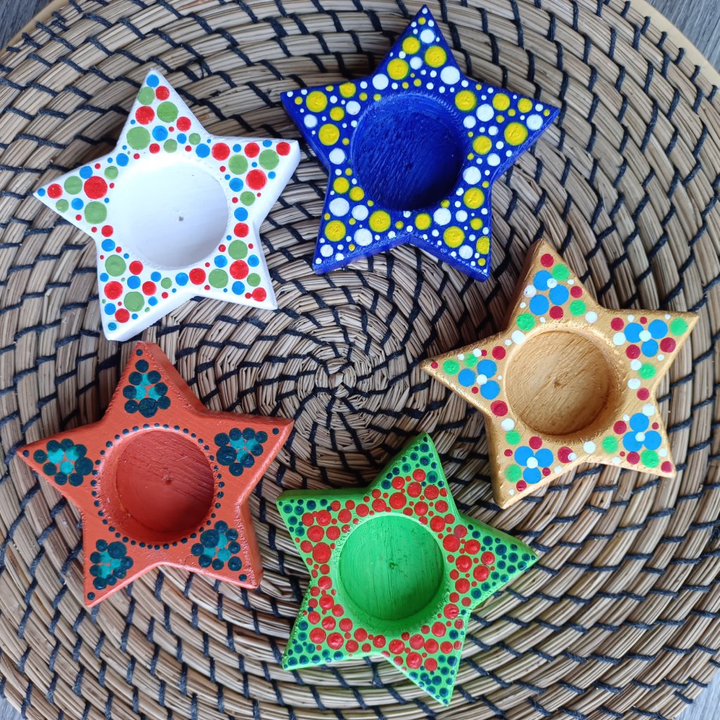Malovaný svícen HVĚZDA pomocí techniky tečkování z dílny akademické malířky ZuzanyArt.