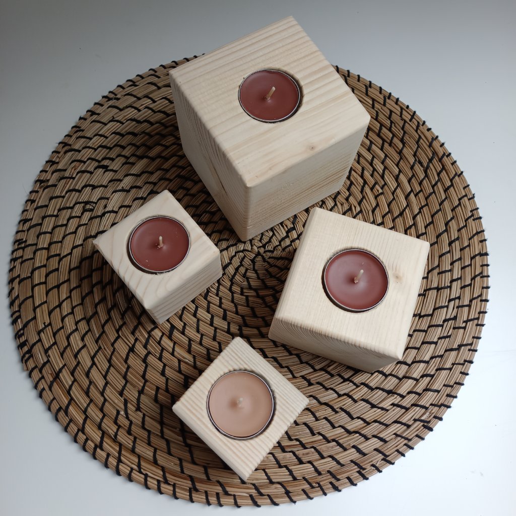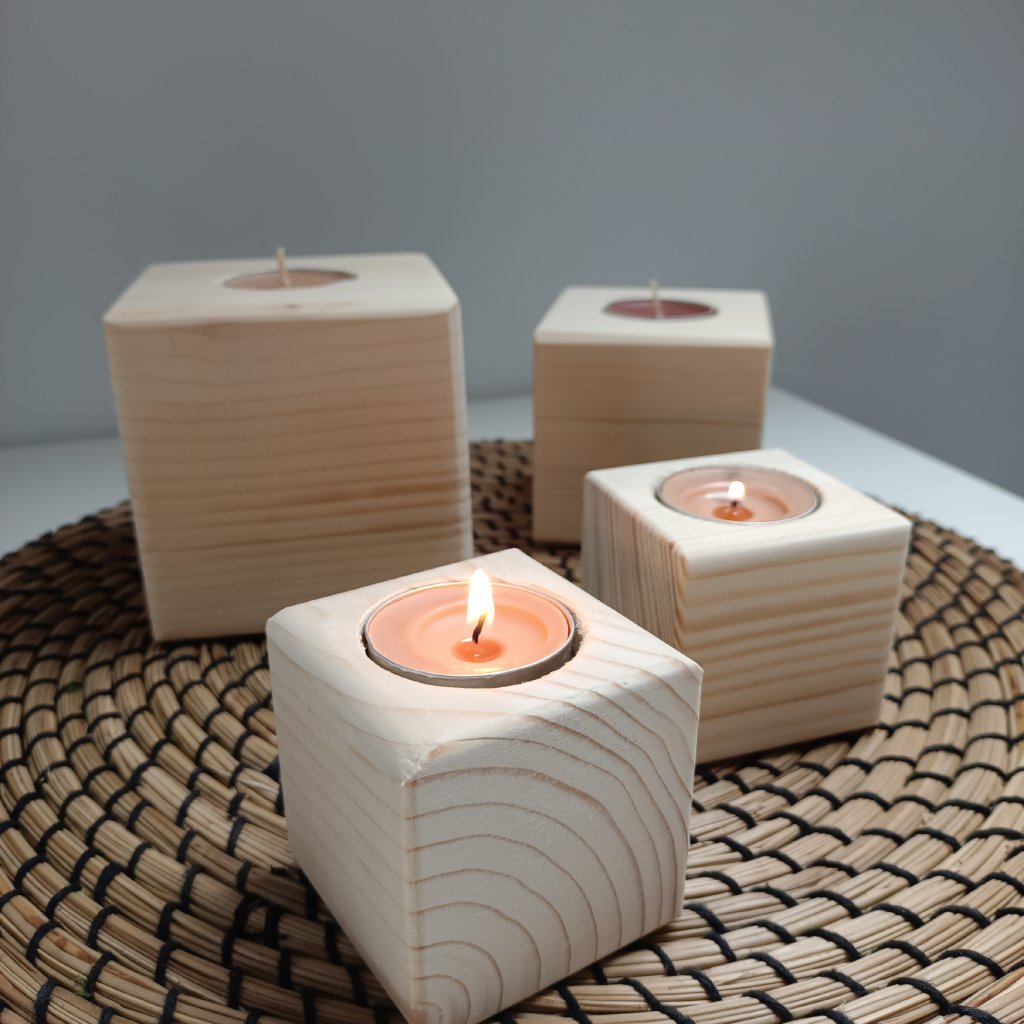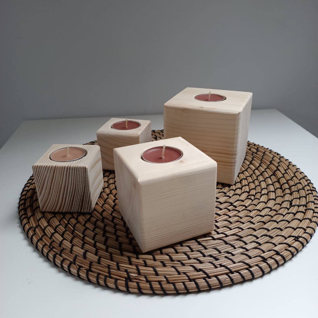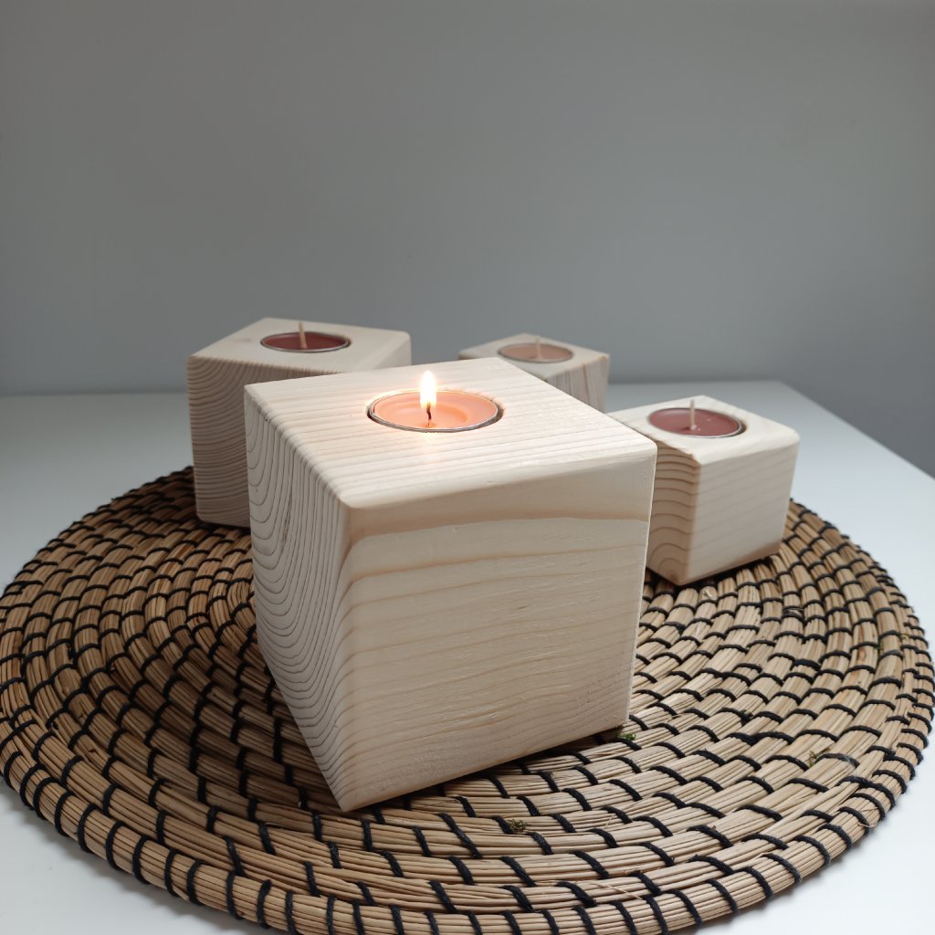 Svícen na čajovou svíčku ve tvaru kostky se nabízí hned v několika velikostech. Otvor na čajovou svíčku 40mm. Nutné použití svíček v nehořlavých obalech, není určeno pro bezobalové svíčky.