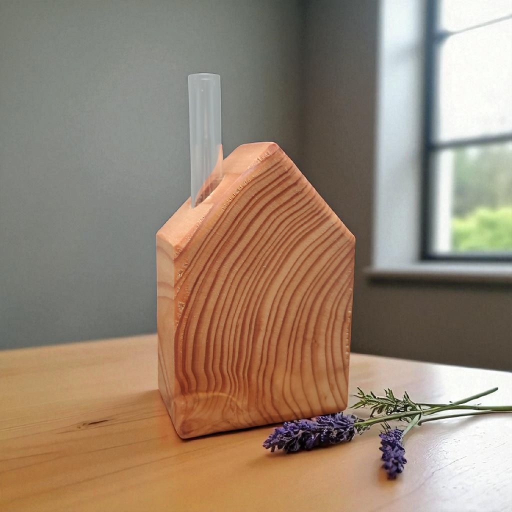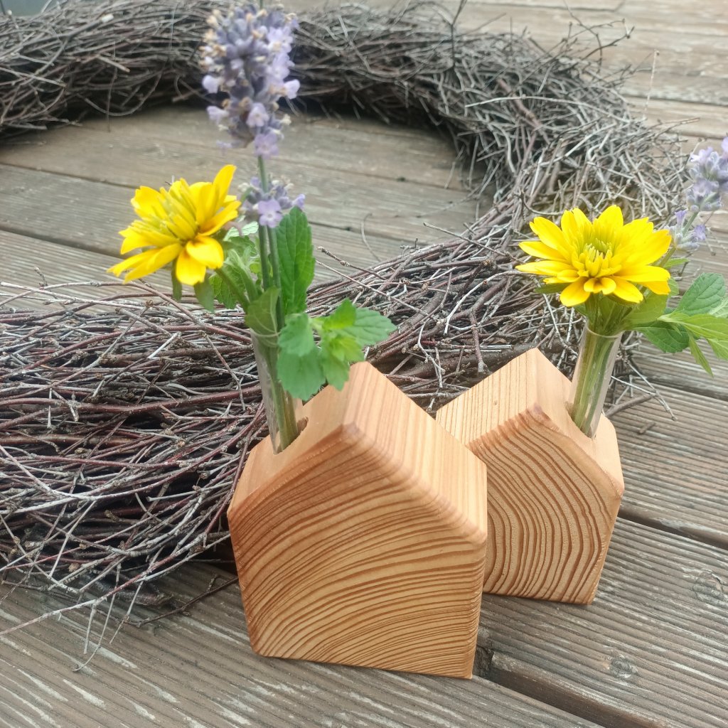Tato limitovaná edice váziček ve tvaru domečků je vyrobena z modřínového dřeva. Vázičky jsou osazeny vloženou zkumavkou, která umožňuje umístění nejen sušených a umělých květin, ale také živých květů ve vodě. Navíc lze domeček použít jako aromadifuzér – stačí naplnit ho aromatickým olejem a přidat odpařovací tyčinku.