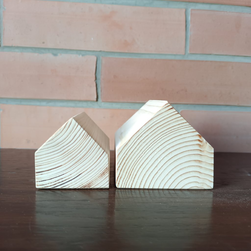 Tato sada obsahuje 4ks středně velkých dřevěných domečků, které vytvoří pěknou sestupnou řadu podle velikosti. Domečky se liší výškou, ale mají stejnou hloubku. Jednotlivé domečky jsou obroušené a mají zaoblené hrany.