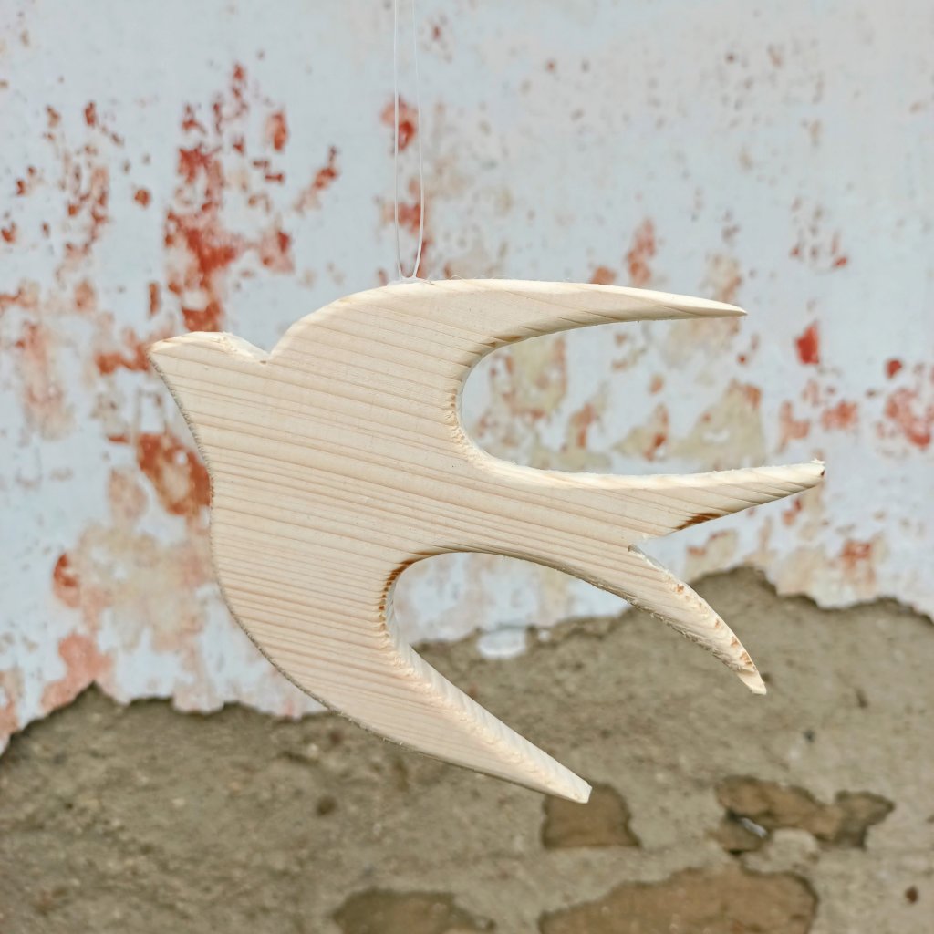 Dřevěná vlaštovka ze smrkového dřeva má tloušťku 1 cm. Hodí se jako dekorace pro jaro nebo podzim, záleží na tom, jakou symboliku od vlaštovky očekáváte. Do truhlíků, suchých vazeb a nádob s květinami.