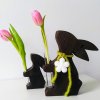 Dřevěný zajíček KÁJA je vyrobený ze smrkového nebo modřínového dřeva o hloubce 4 cm. Každý zajíček má svoji skleněnou vázičku pro vkládání živé nebo sušené květiny. Vázičku lze vyjmout a nahradit třeba velikonoční žílou nebo jinou dekorací.