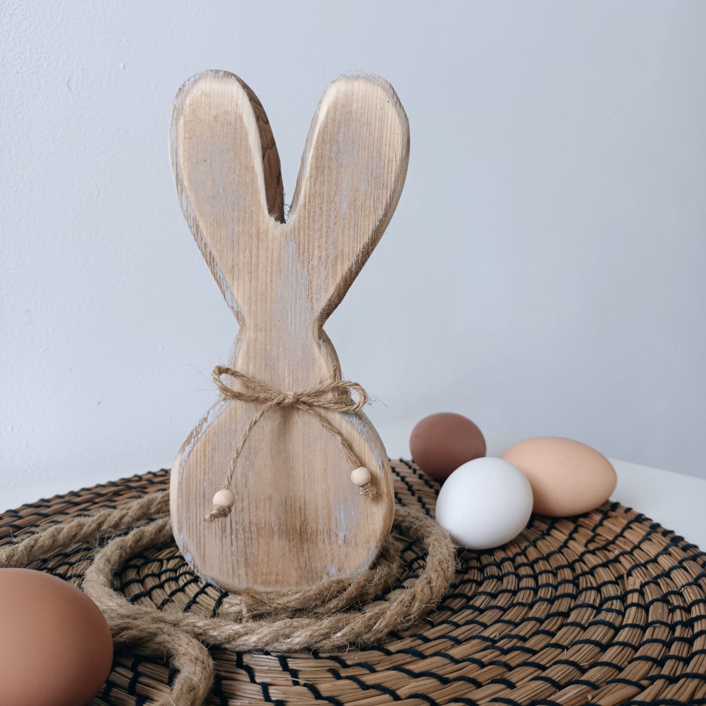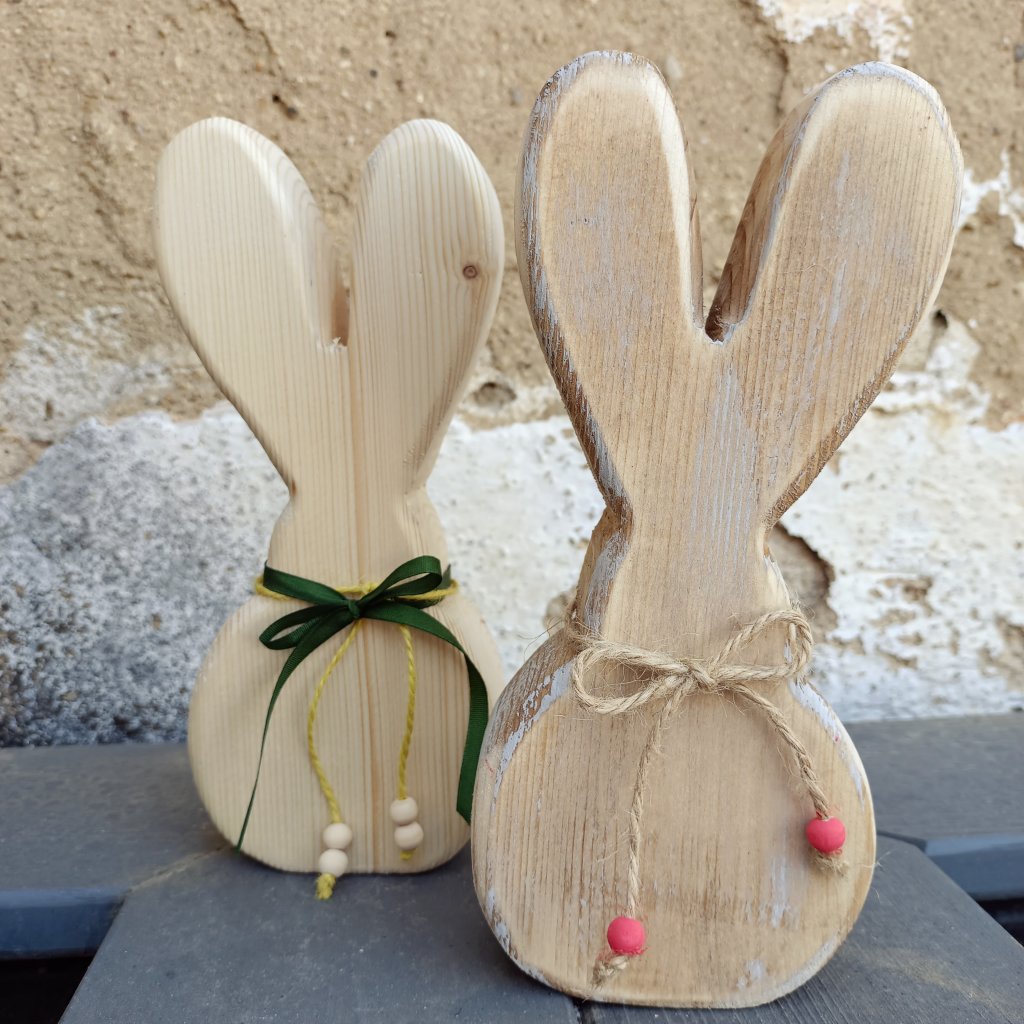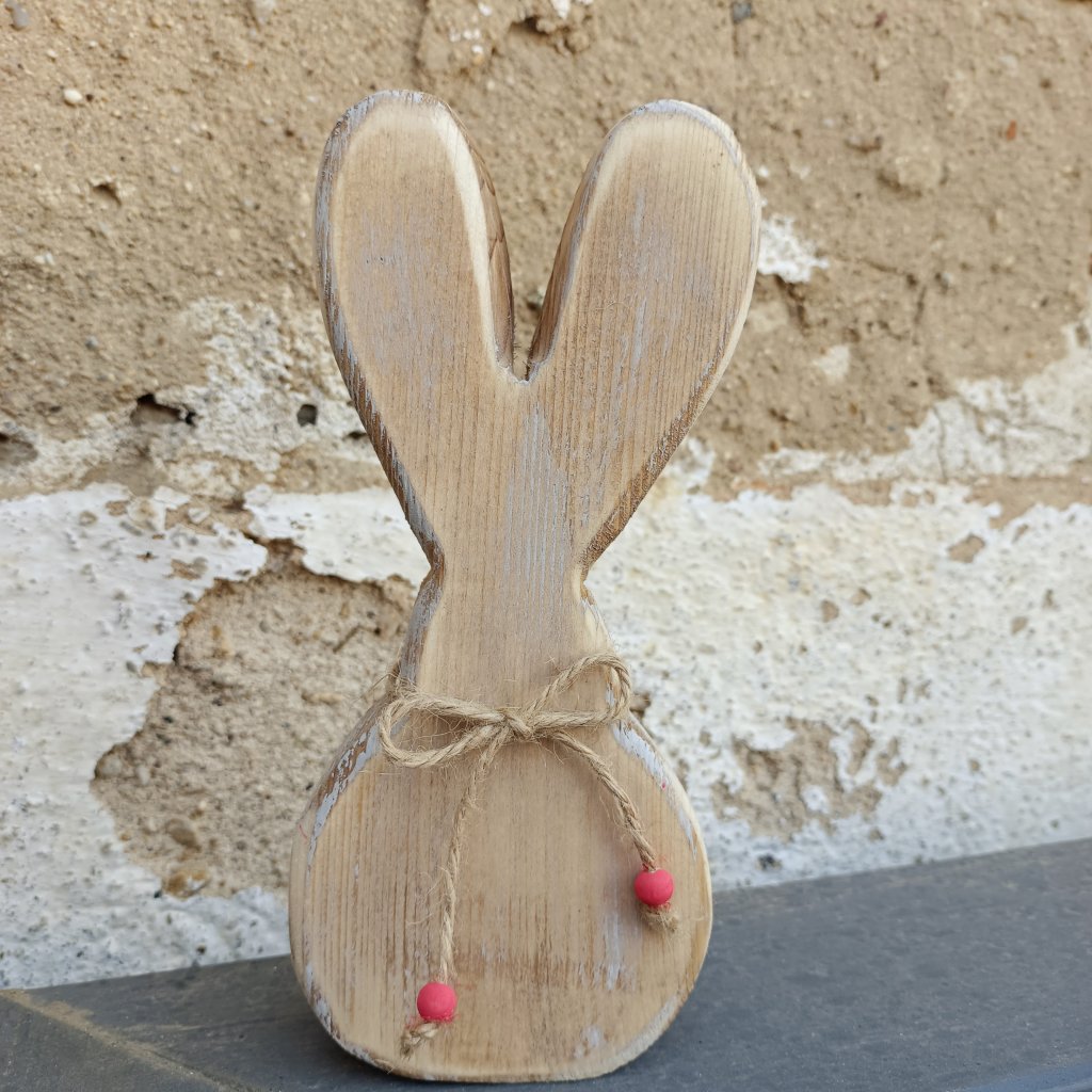 Co Vás na zajíčkovi MATY hned zaujme, jsou veliké uši. Dekorace je lehce patinovaná - ve stylu starého paletového dřeva. Vyrobeno ze smrkového masivu tlouštky 4 cm, ručně opracováno.