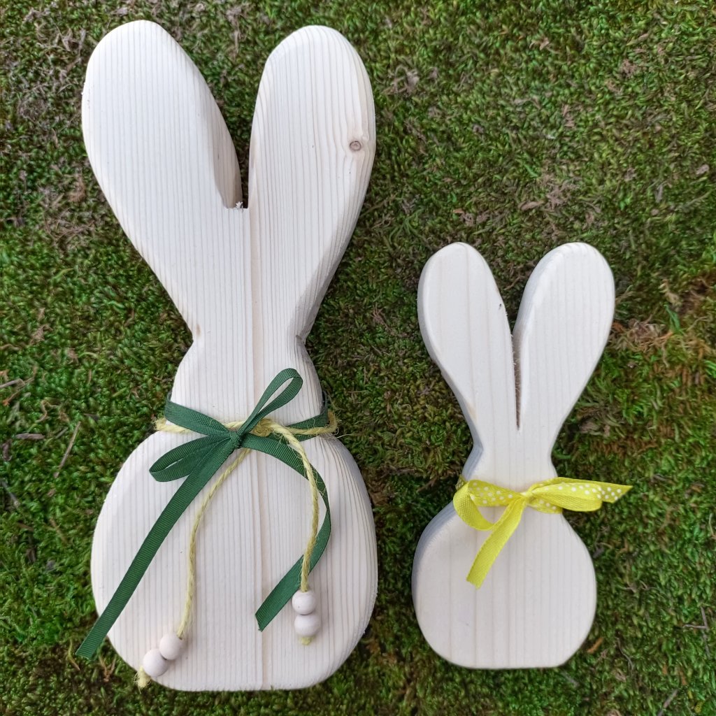 Polotovar není opatřen doplňky, které vidíte na fotografiích ty jsou pouze pro inspiraci. Pokud máte zájem o zajíčky s doplňky, s ocáskem nebo v barvě navštivte sekci bytové doplňky nebo v menší velikosti.