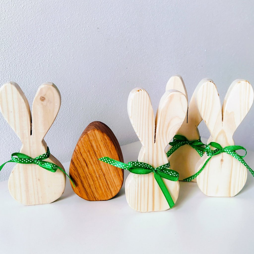 Polotovar není opatřen doplňky, které vidíte na fotografiích pouze pro inspiraci. Pokud máte zájem o zajíčky s doplňky, s ocáskem nebo v barvě navštivte sekci bytové doplňky.